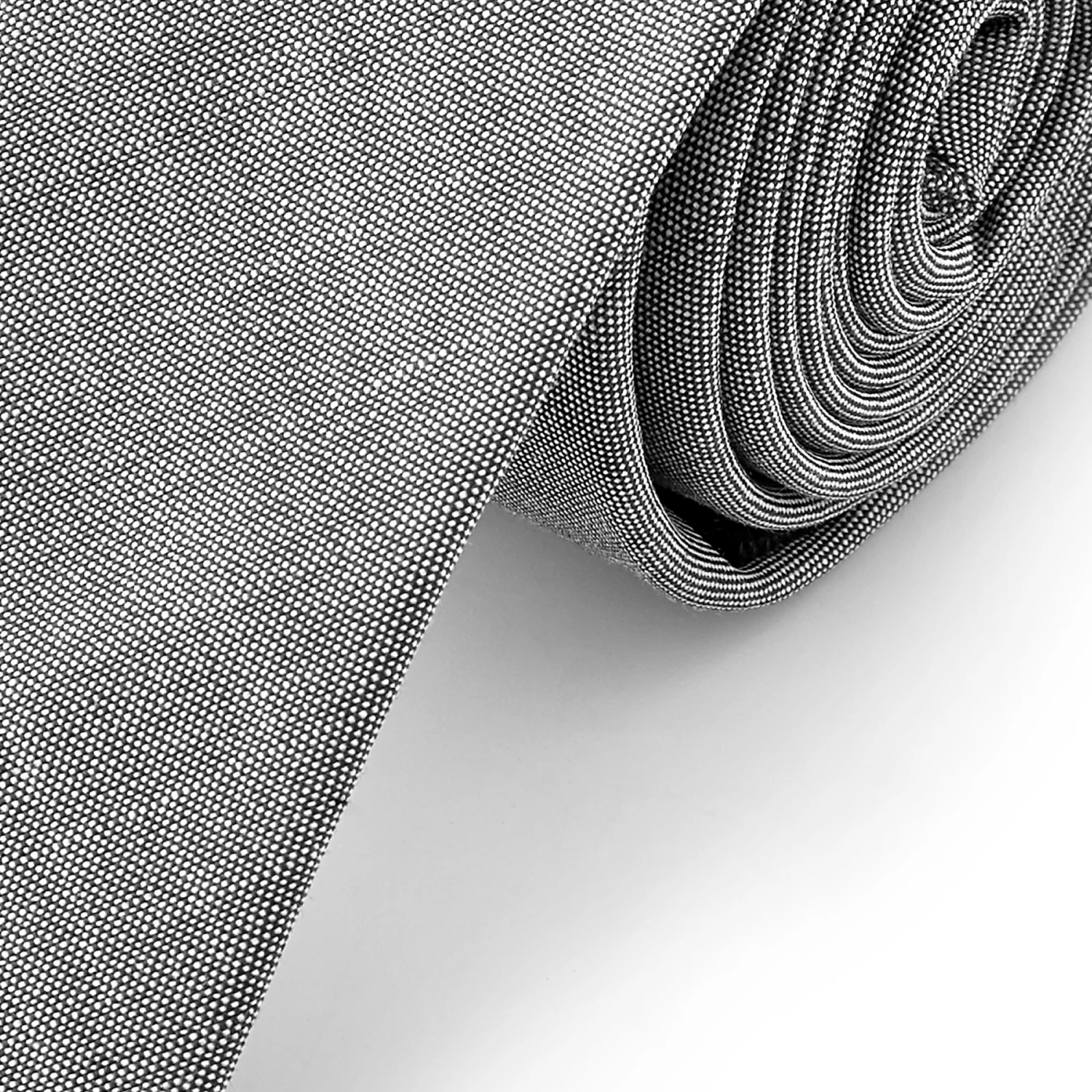 Bold, yet muted, this simple tie is a beautiful alternative for formal occasions. The grayscale pattern gives it a powerful, metallic edge… and a distinctive touch to your outfit.