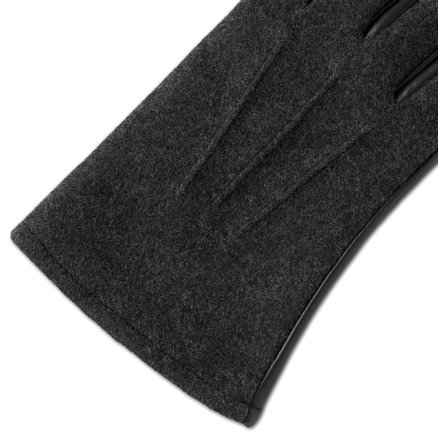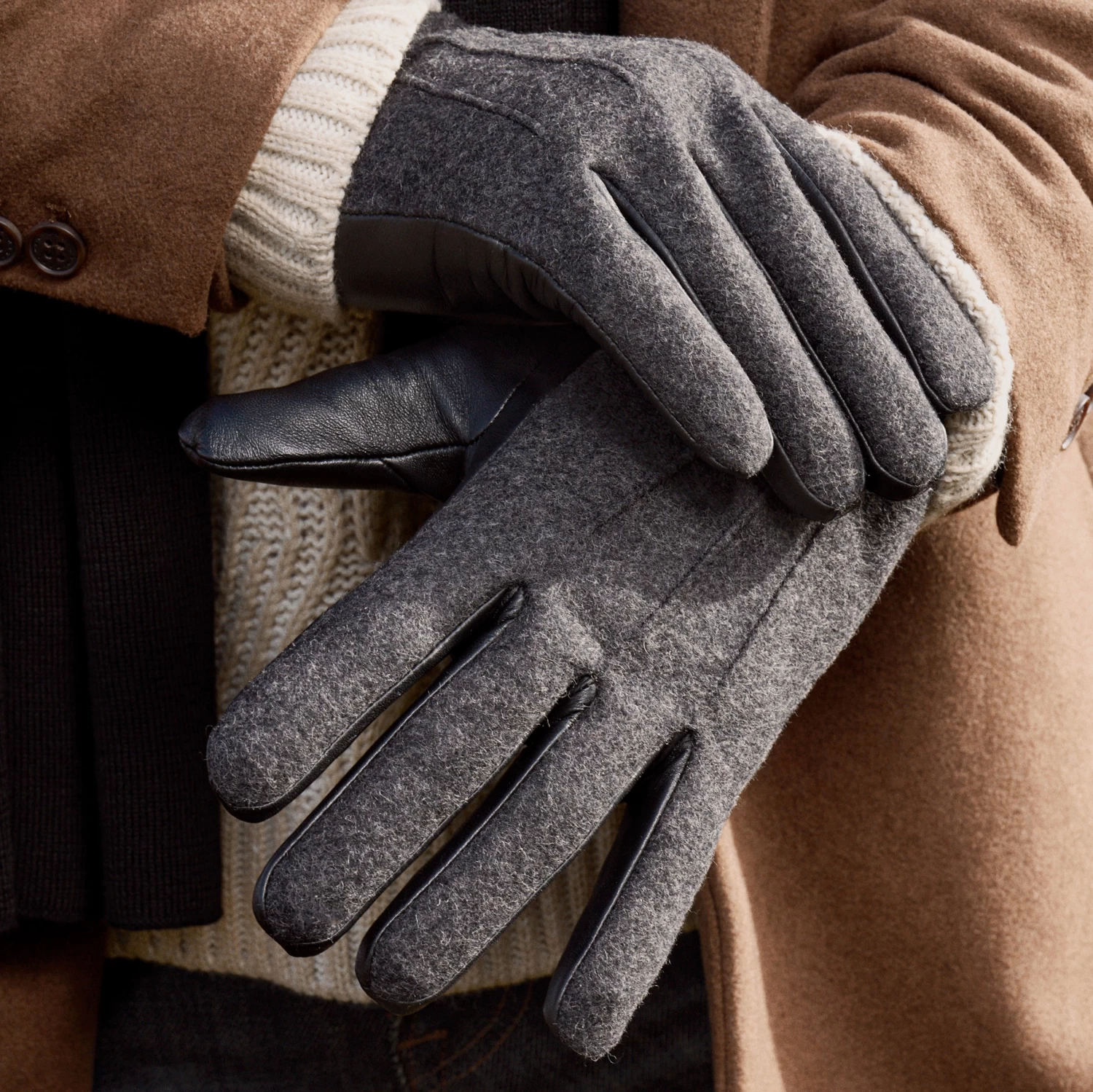 A two-tone design, perfect for keeping warm in style. Crafted in a comfortable wool blend that comes in a charming gray color, and a soft fleece lining for insulation. The palms are covered in flexible black sheep leather, making these men’s gloves a stylish addition to your look.