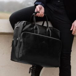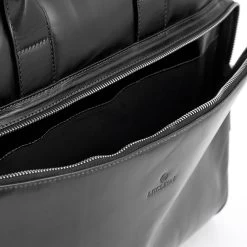 Crafted from soft yet durable black leather that weathers wonderfully over time, it features a double-lined protective pocket and padded compartments for your power cords and mouse. A large central compartment holds files and paperwork.