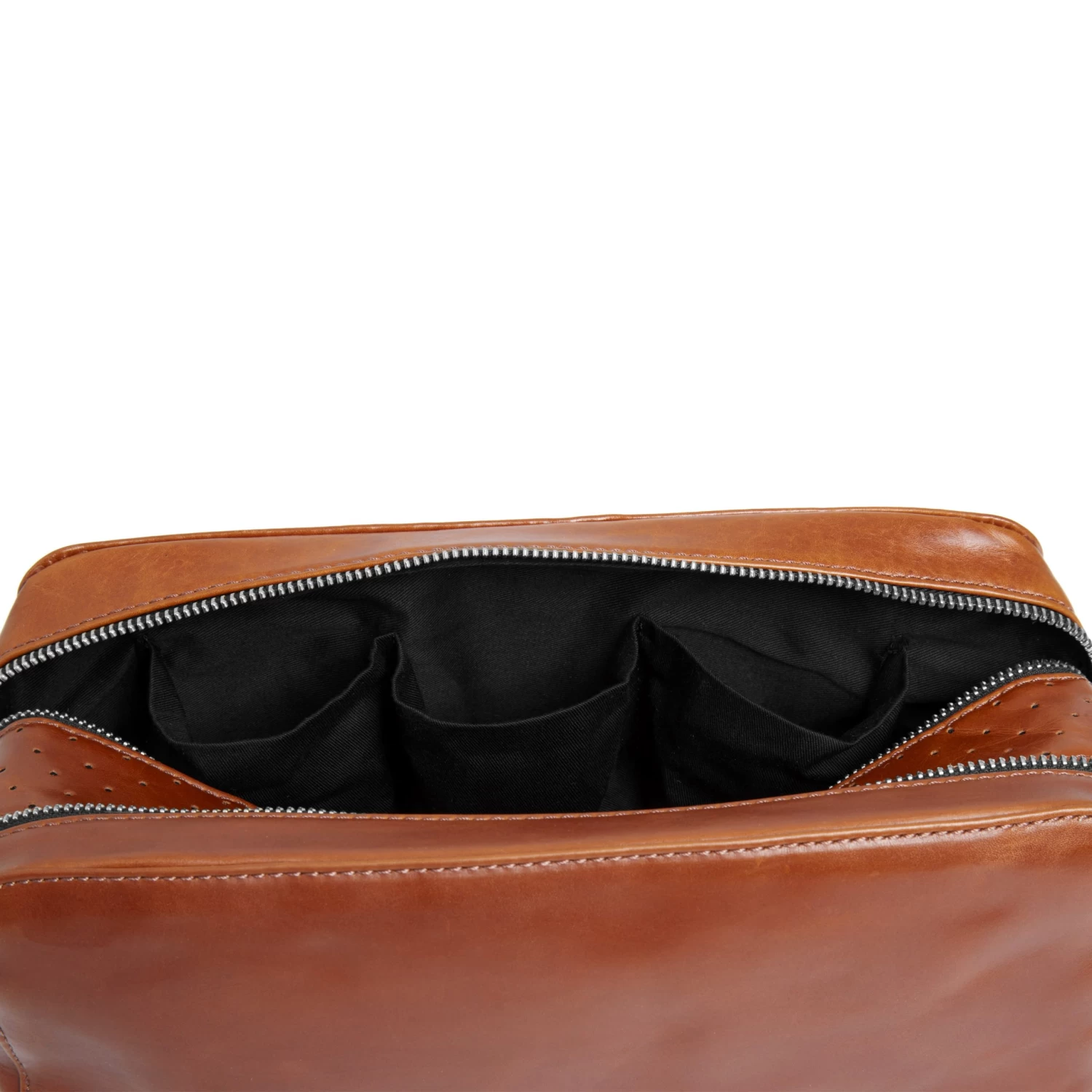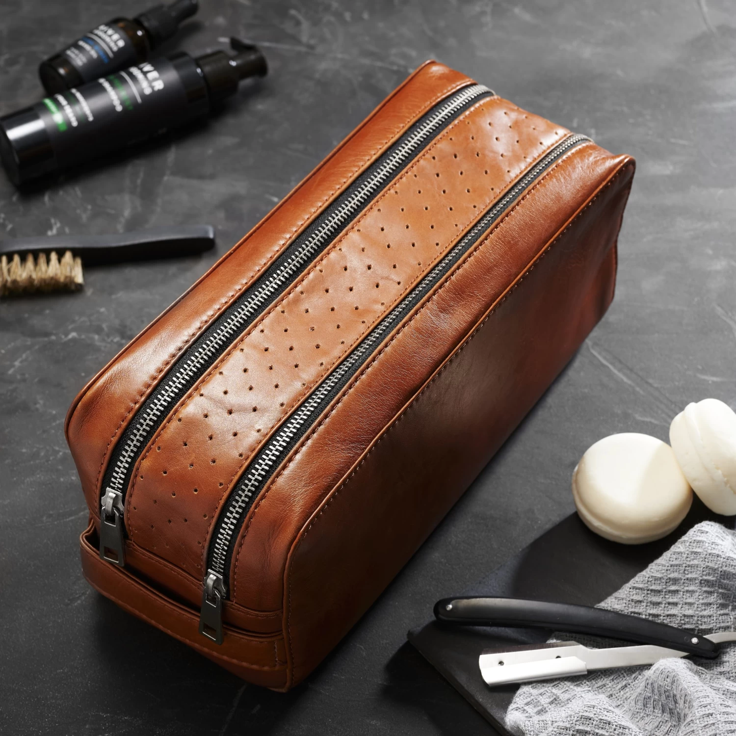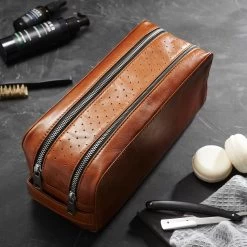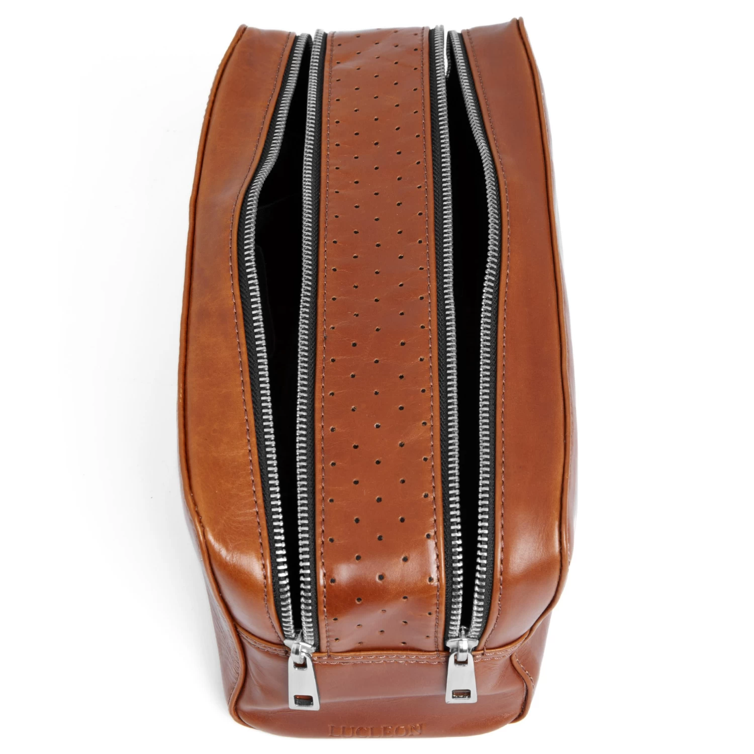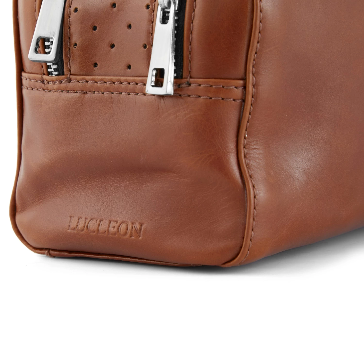 Genuine cow leather is complemented beautifully by strong, secure YKK zippers to make this wash bag the only one you’ll ever need. The soft, tan leather improves with age and use, getting better and better. Feel free to do the same.