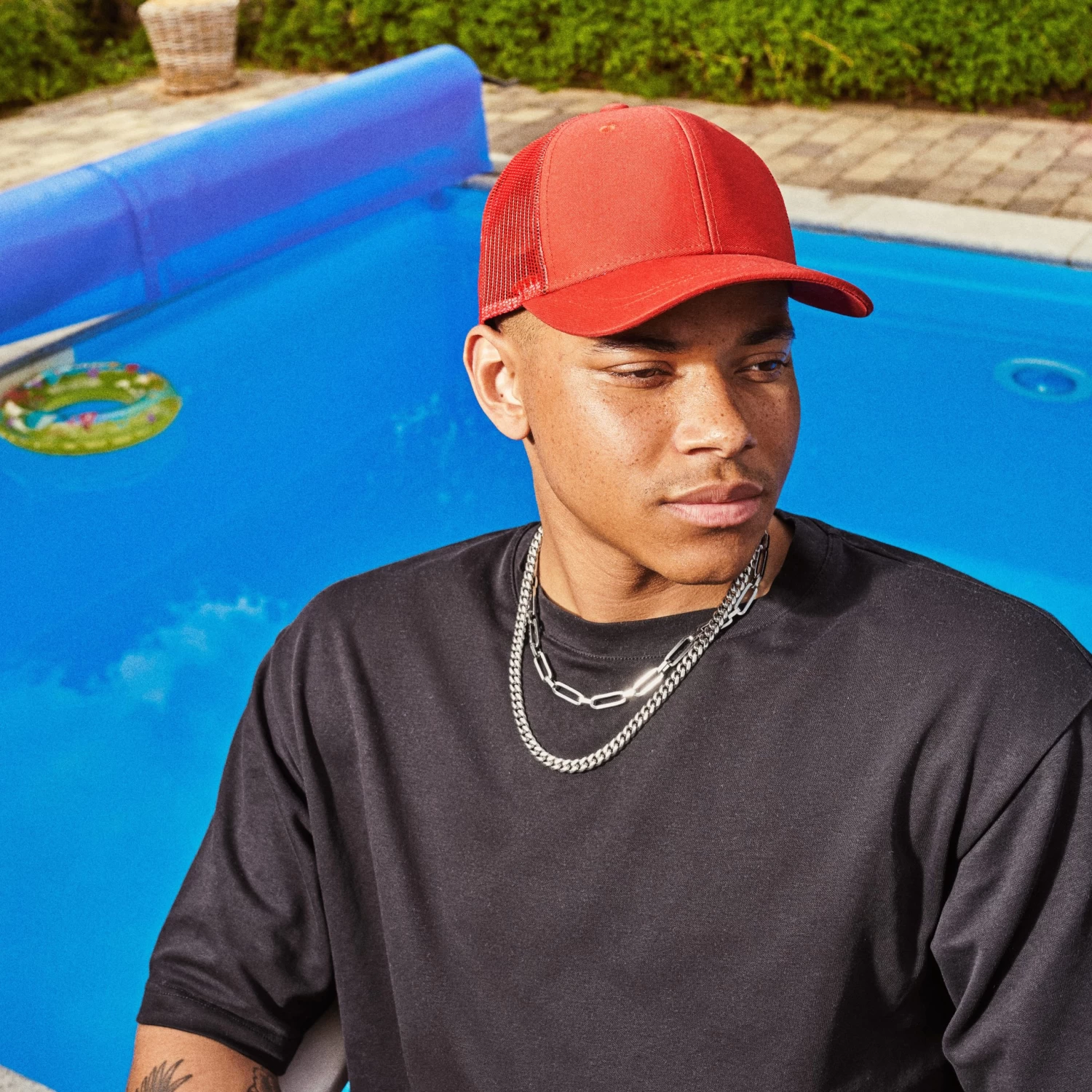 Gear up for the open road with this men’s trucker cap. Designed with a classic mesh back and a structured front panel, this hat combines style and breathability. The adjustable snapback ensures a personalised fit – enjoy your adventurers in comfort and style.