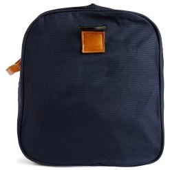 Strong navy blue construction ensures durability. Secure front pocket keeps your valuables safe. Features a removable shoulder strap.