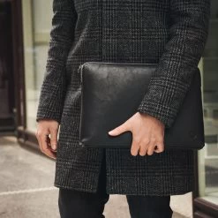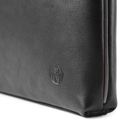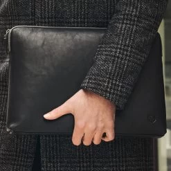 This black leather laptop sleeve is a safe way to protect your laptop while on the move. Made of genuine leather, this sleeve is padded to keep your laptop in place and has a sturdy YKK zipper to make sure it stays there. The inside features a compartment divider to keep your portfolio separate from your laptop.