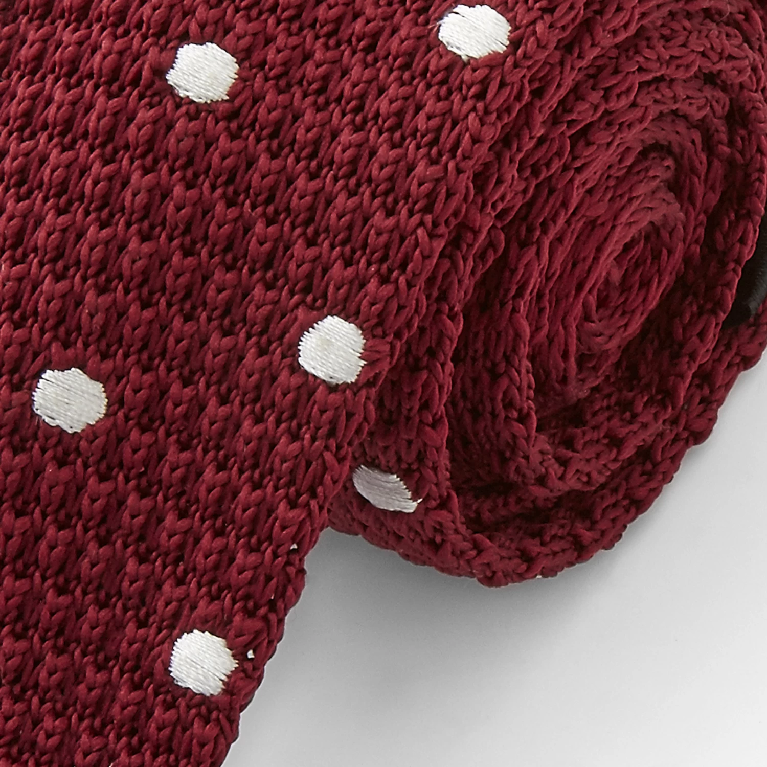 Knit ties like this one aren’t just for hipsters. They also add a little something extra to the everyday look too. 100% polyester tie is crafted with comfort and fashion in mind. The mahogany background is playful and bright, while the white polka dots add a fun pop of design.