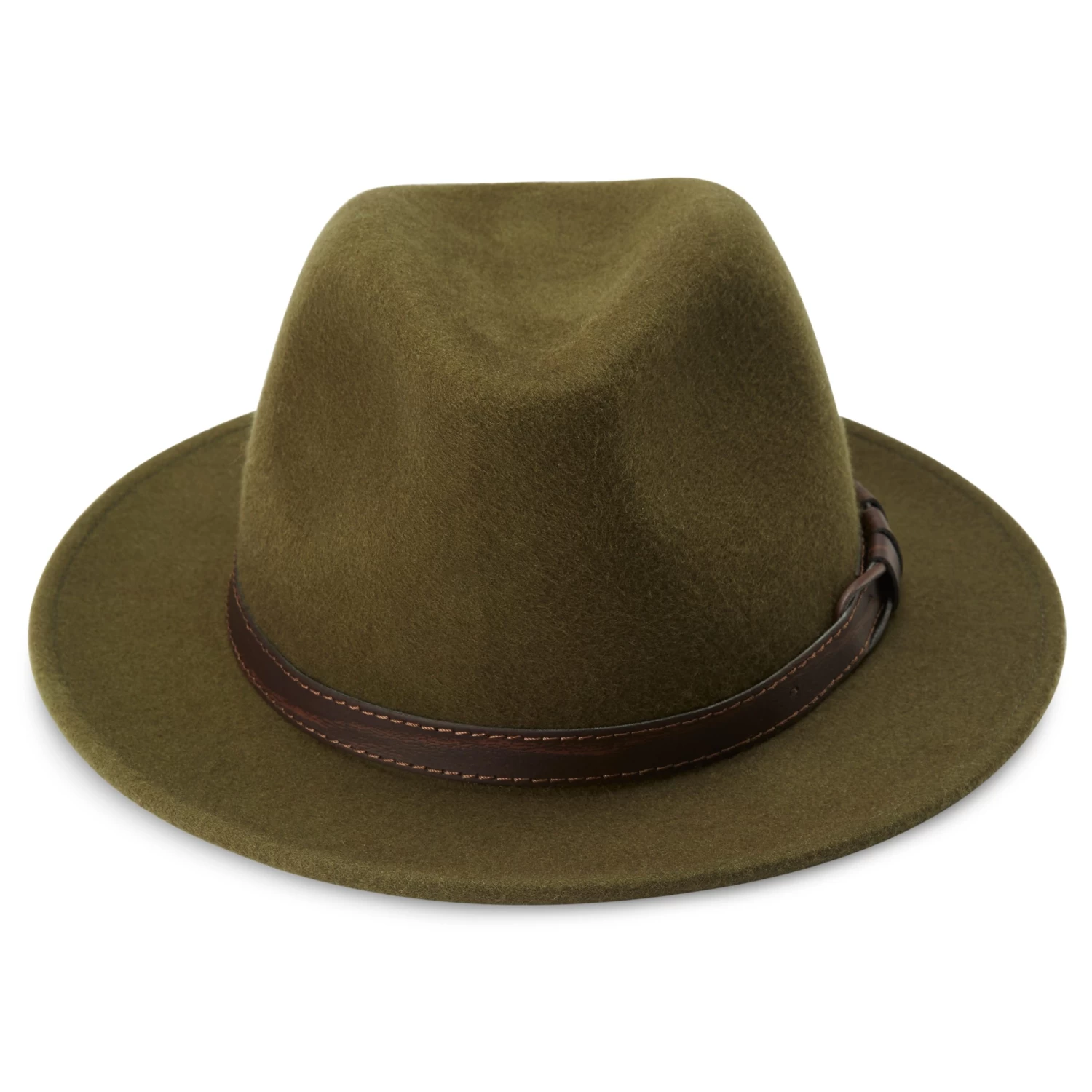 A timeless design, this flat-brim fedora is highlighted by a vegan leather band and detailing. Crafted in 100% soft wool felt and made in Italy, this hat blends the iconic fedora shape with modern style.