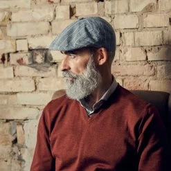 As always with Fawler hats, this one is expertly cut in Italy and fully lined. This soft, lightweight flat cap is ideal for summer with its breathable linen and cotton construction on the shell, lining, and sweatband. The padded brim provides structure while the blue and white striped pattern wears well with seasonal attire.
