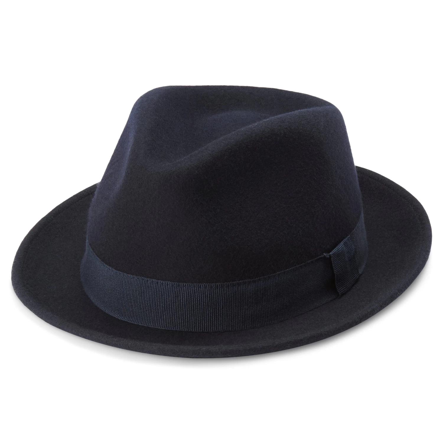 Made in Italy from 100% wool. Features a navy blue hat band for a clean, classic look.