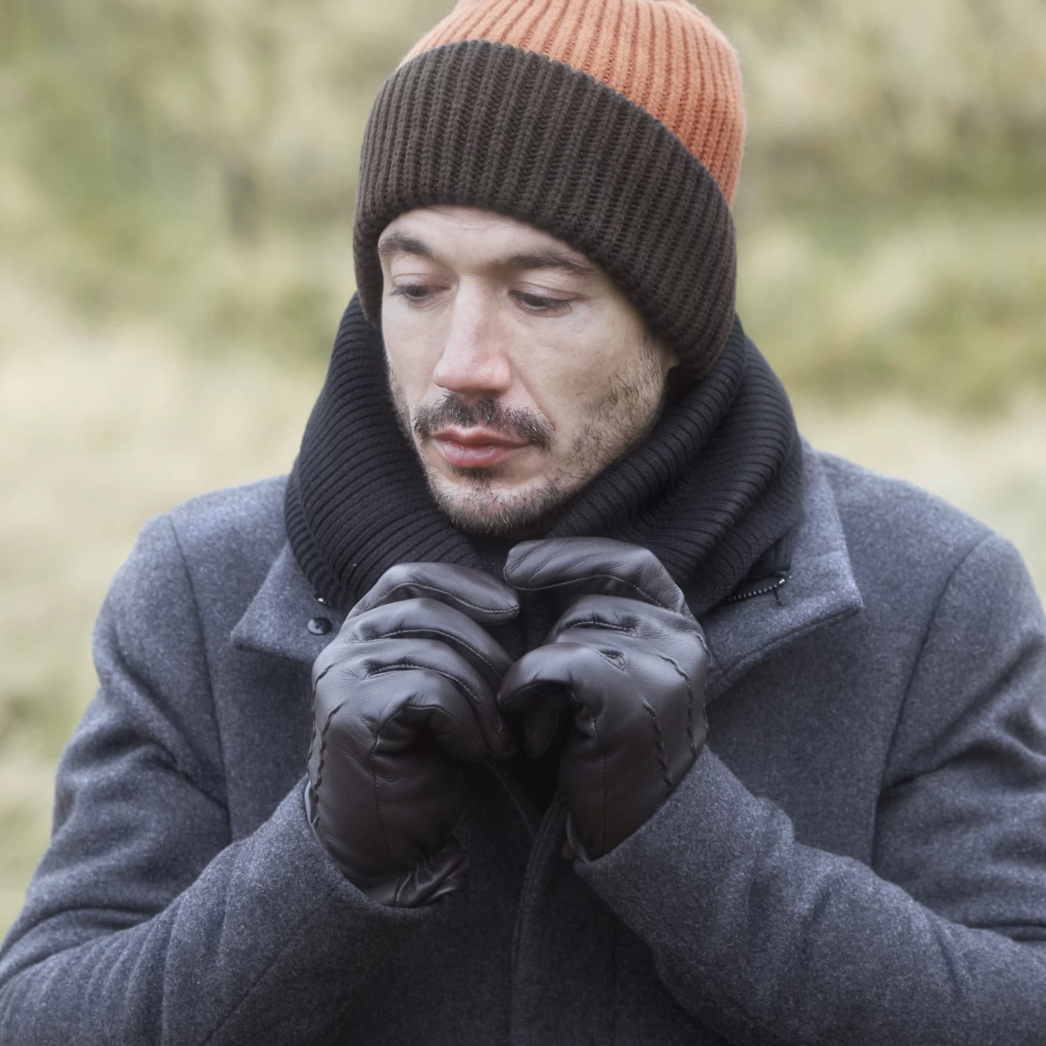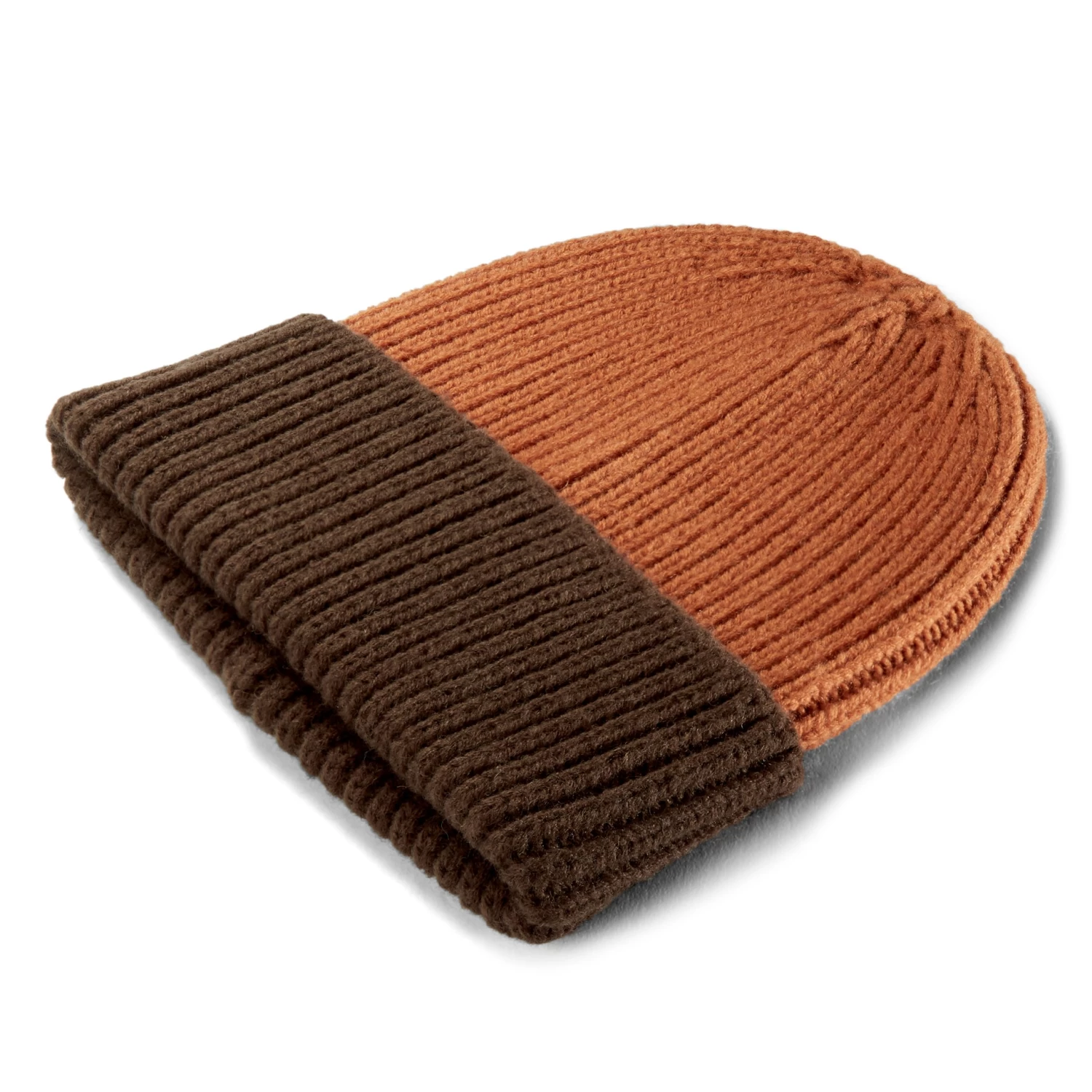 Designed in Denmark. Features a brown folded brim and a burnt-orange body. A casual beanie that keeps you warm – no matter where the road takes you.