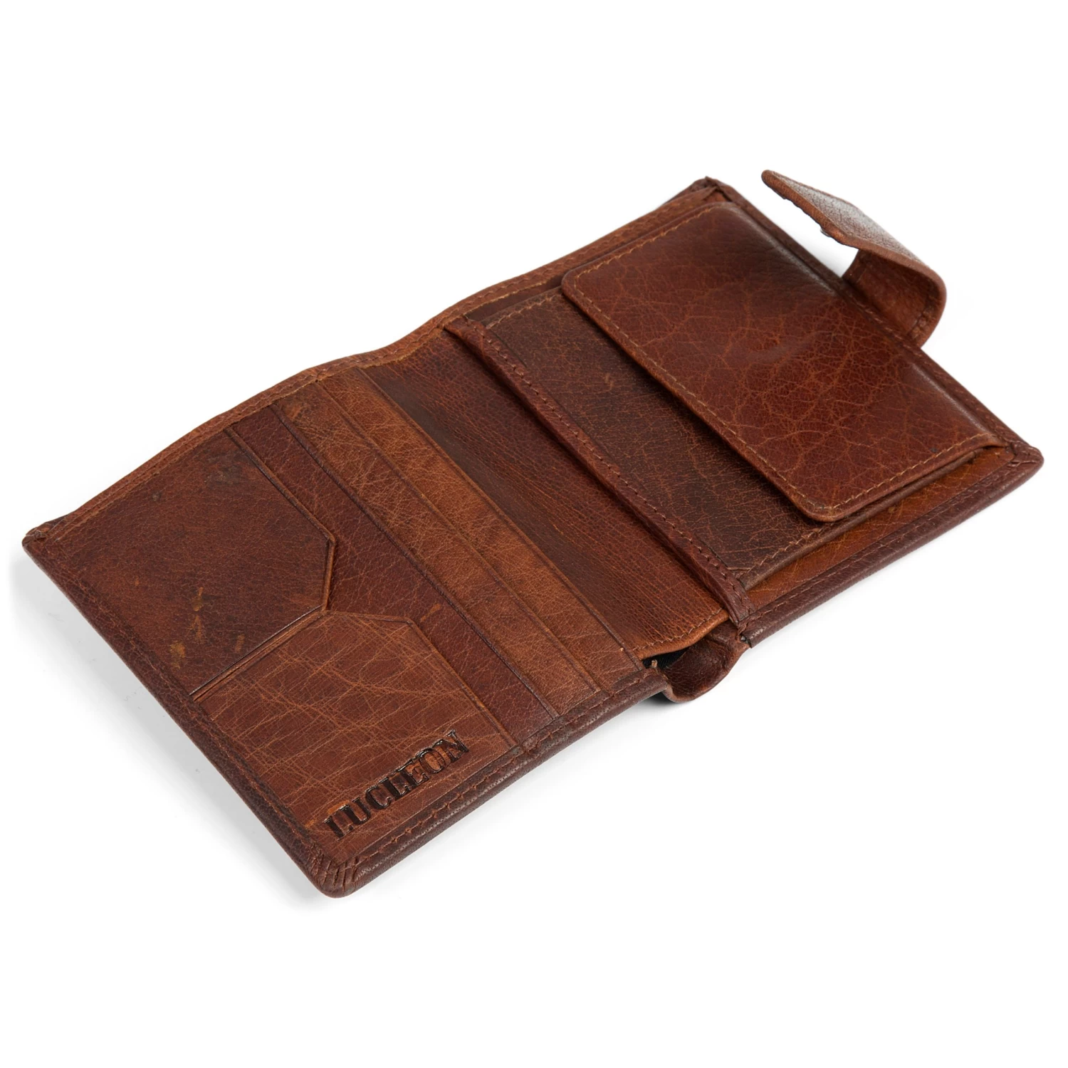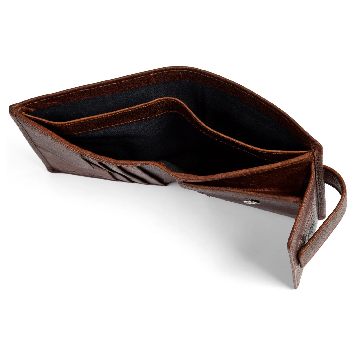 This wallet is roomier on the inside than it appears on the outside, with a divided bill compartment, 3 2-card slots, and a separate snap button coin pocket. A press-stud closure keeps your valuables safe.