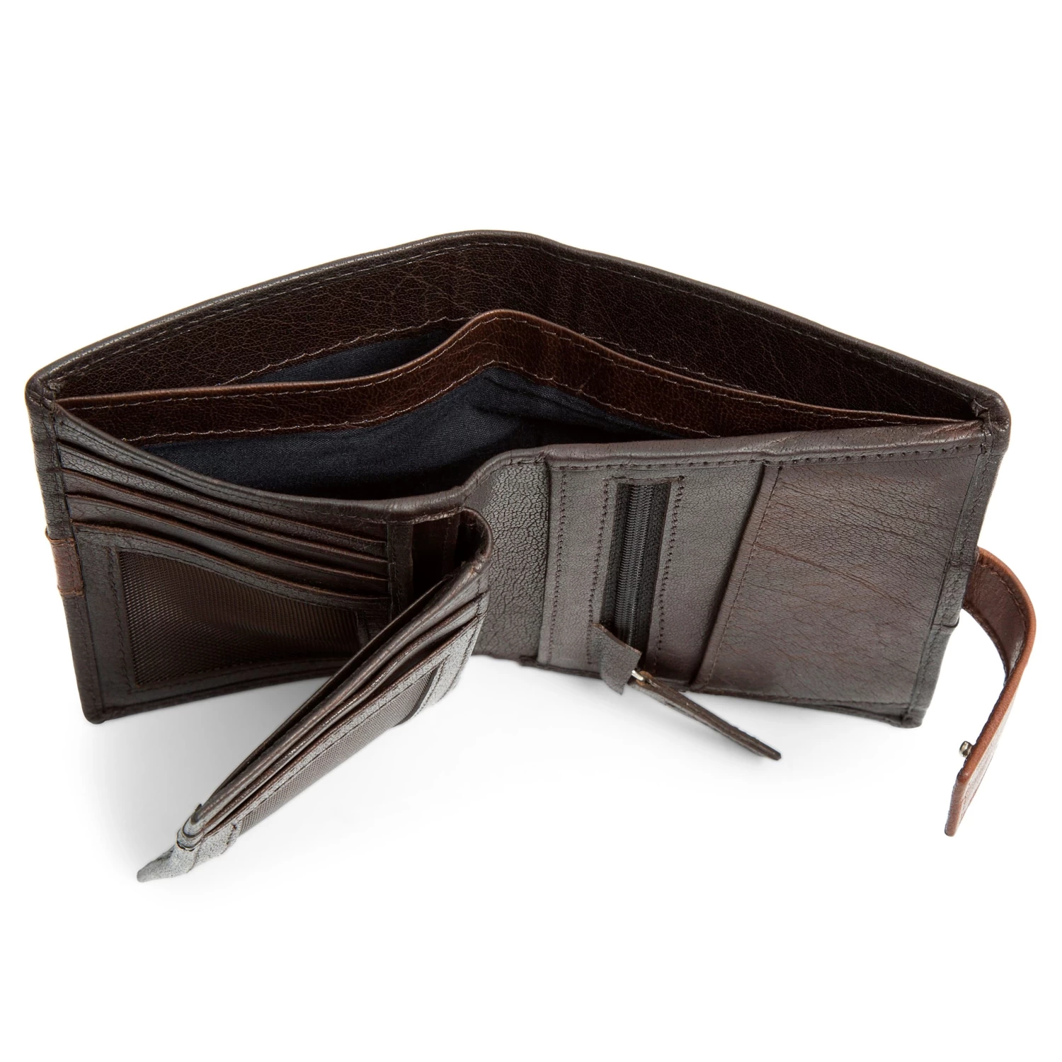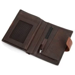 You’ll find that this one-does-it-all wallet is a marvel of organization and efficiency. In one small, two-fold design, you’ll find 9 2-card slots, 2 bill sections, 2 ID windows, and a zip-locked coin pocket.