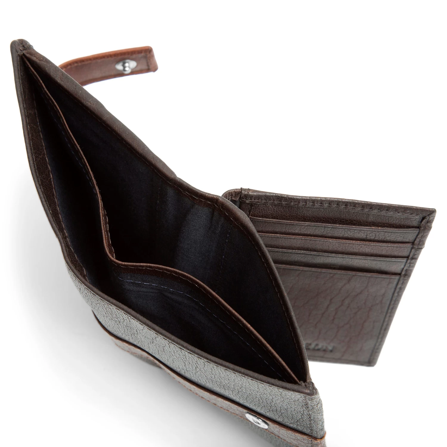 The minimally treated buffalo hide, of the highest grade, retains the natural kinks and defects of the leather and gives off a slightly vintage look. The two-tone design gives it an extra kick.