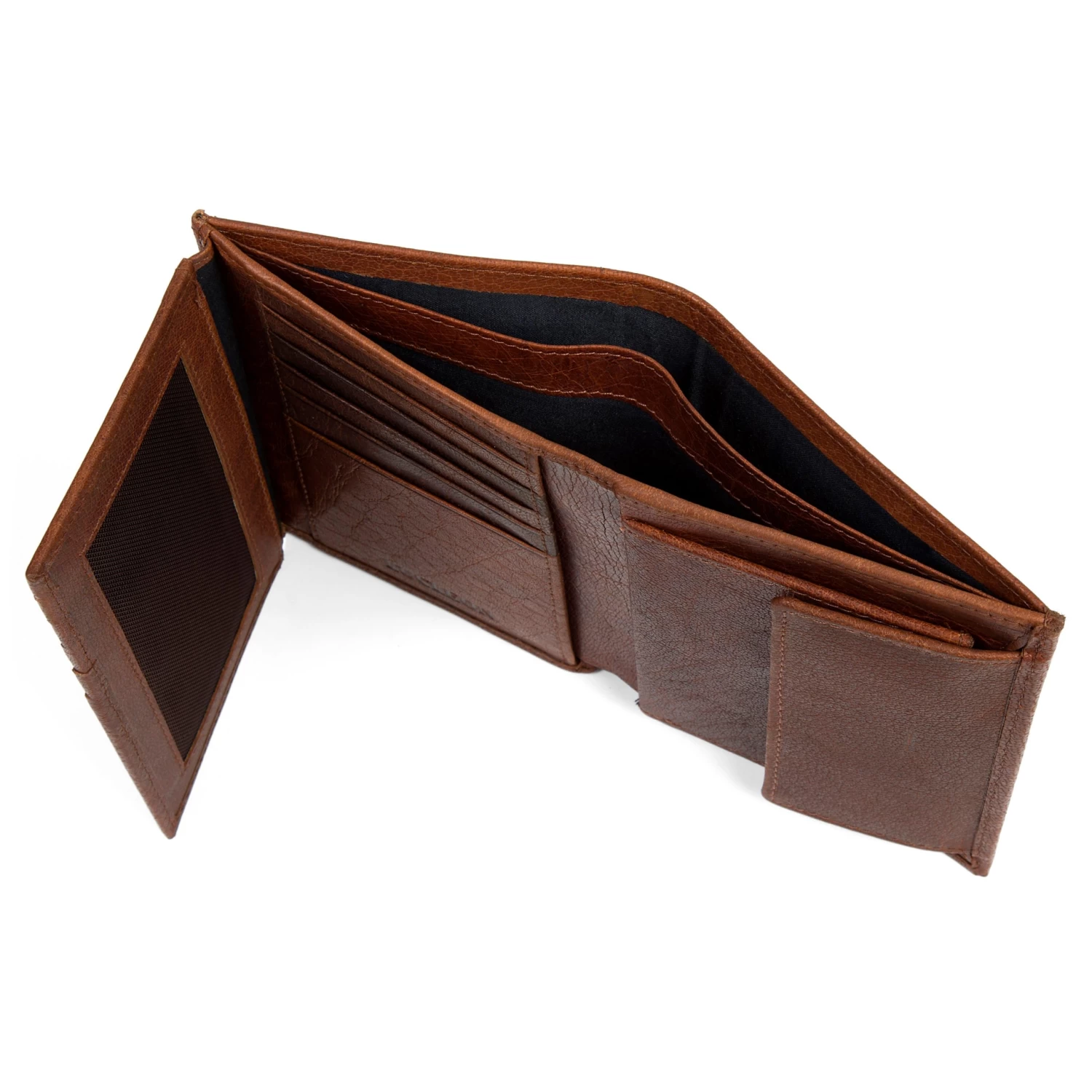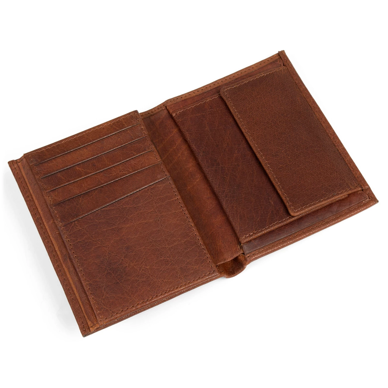 This classic, two-fold design wallet features 10 2-card slots, an ID window, a divided section for bills, and a coin pocket with snap closure. The tall, stylish design is easy on your pockets.