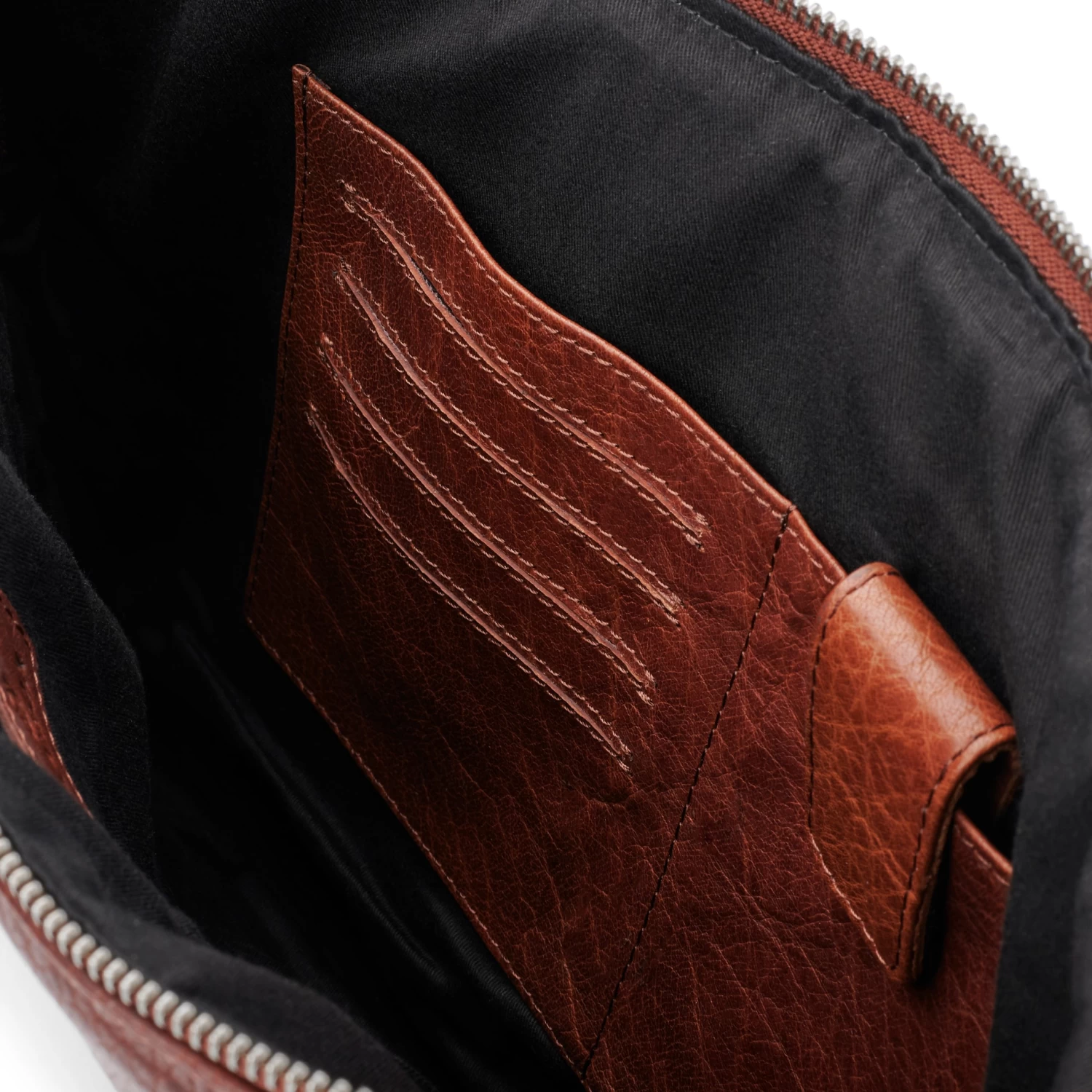 The interior offers a luxe black cotton lining along with a built-in card holder (with 4 slots) and 2 slip pockets for stashing your smaller items.