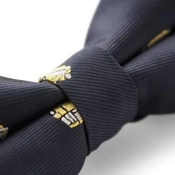 Cruise through your formal event with this striking navy bow tie featuring the most iconic British car in history. Add a vintage touch to your polished look.