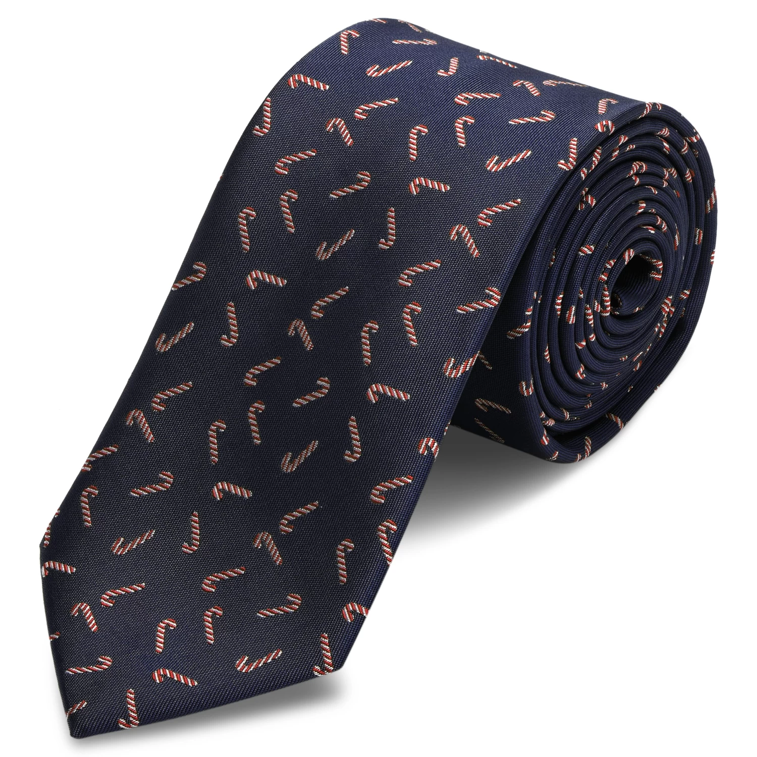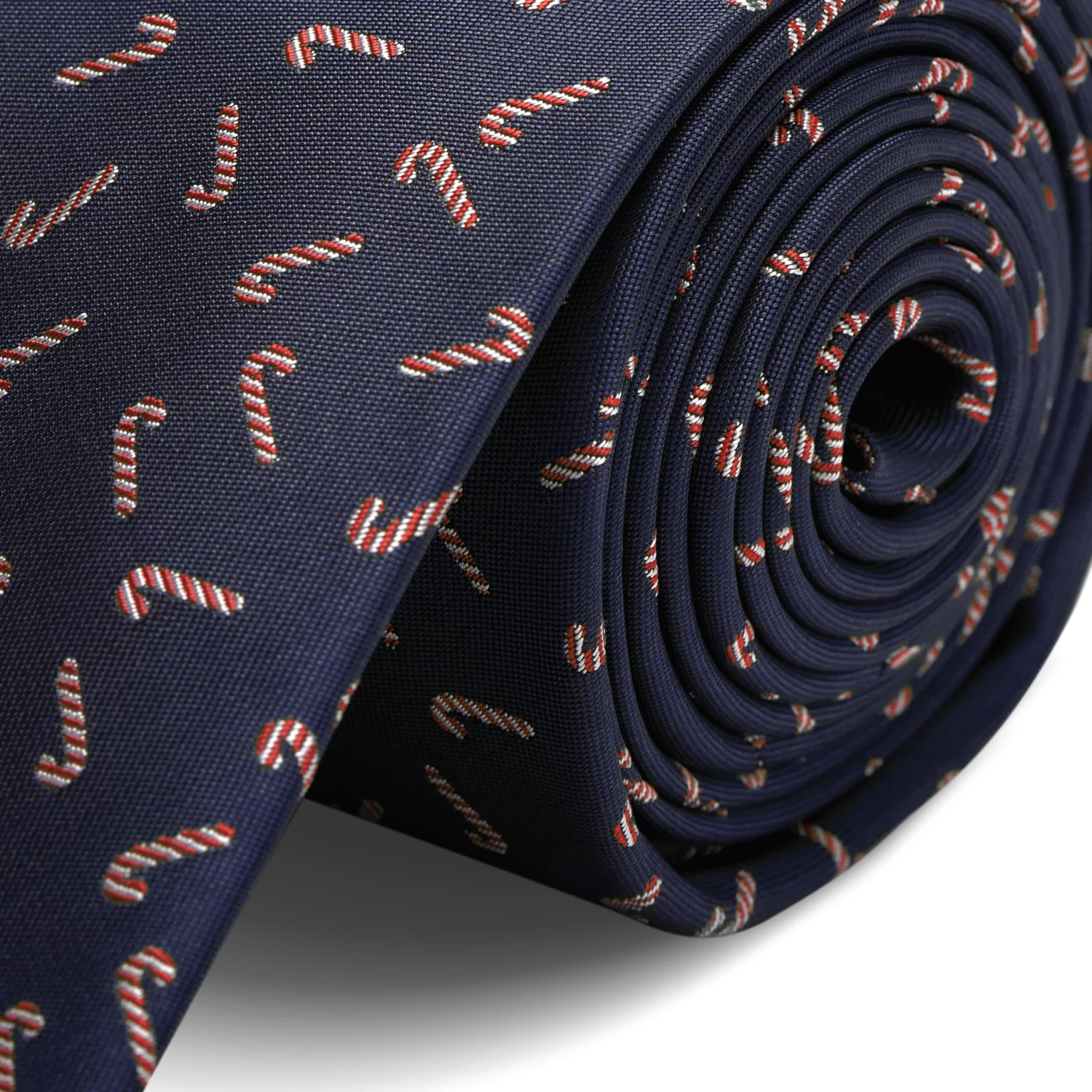 With red and white candy canes floating over a navy blue background, this is a Christmas tie that will make anyone merry.