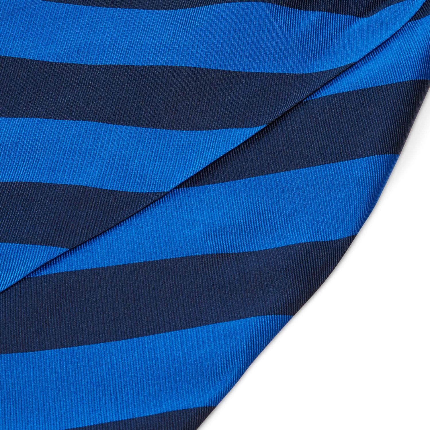 Bold blue and navy stripes give this contemporary cravat a handsome finish, adding an attractive touch to your outfit.