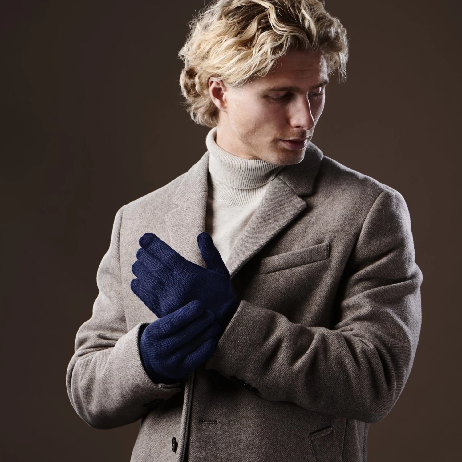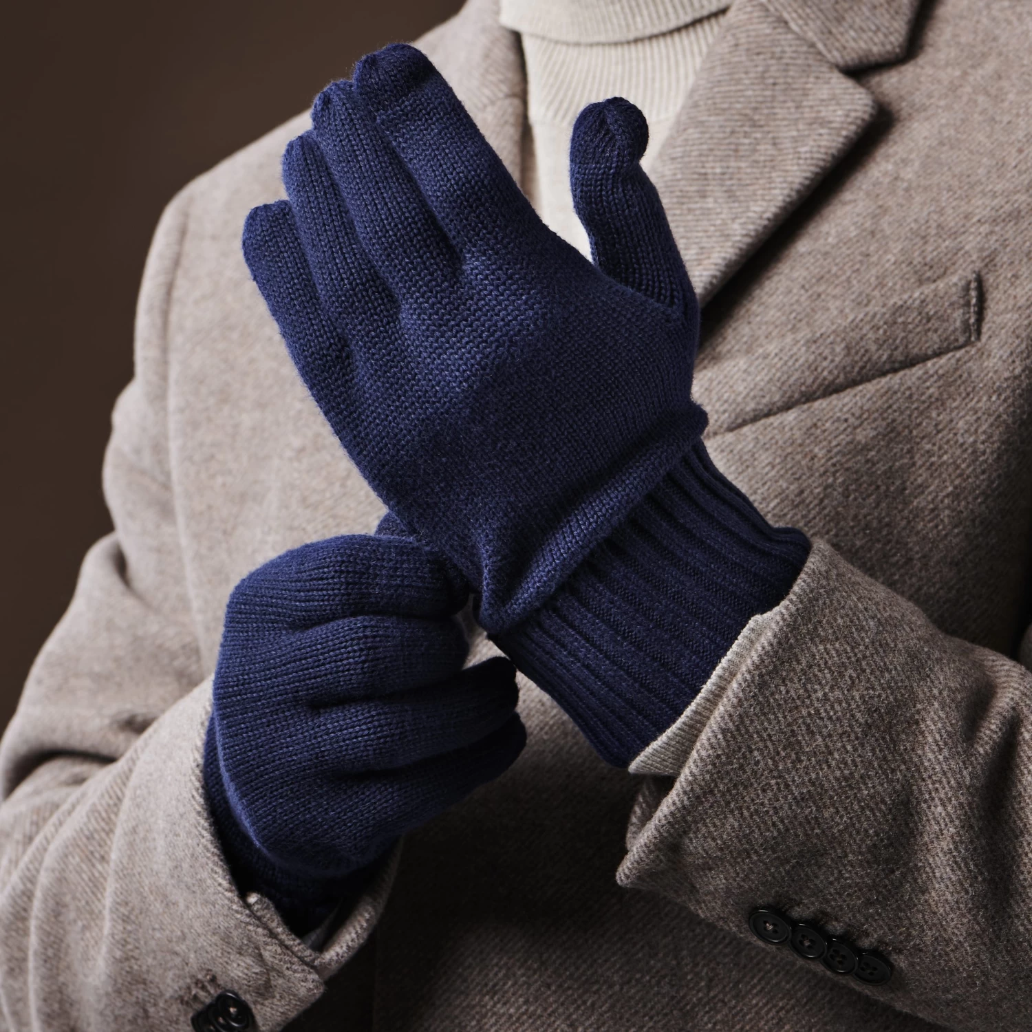 This pair of navy blue knitted gloves lets you use your phone or tablet with ease… without sacrificing warmth.