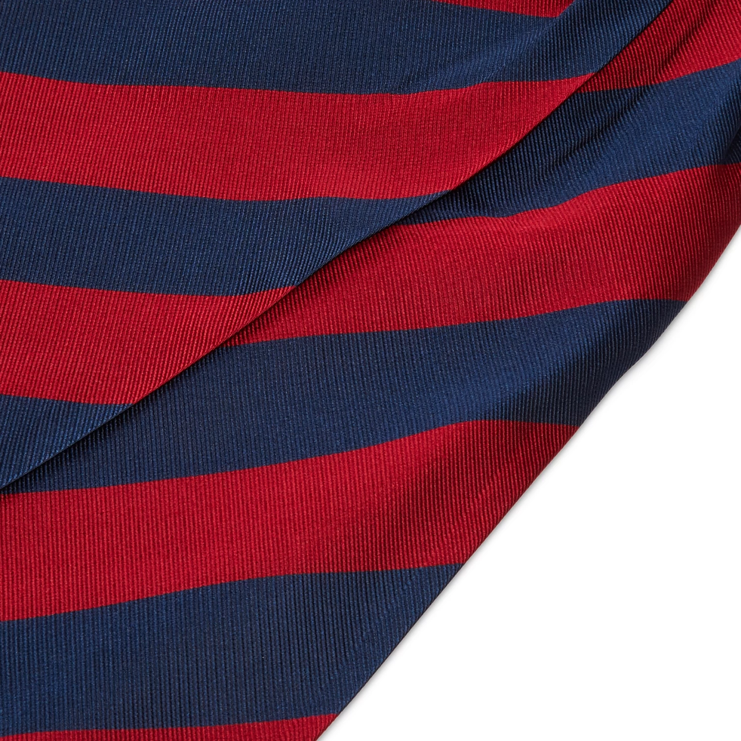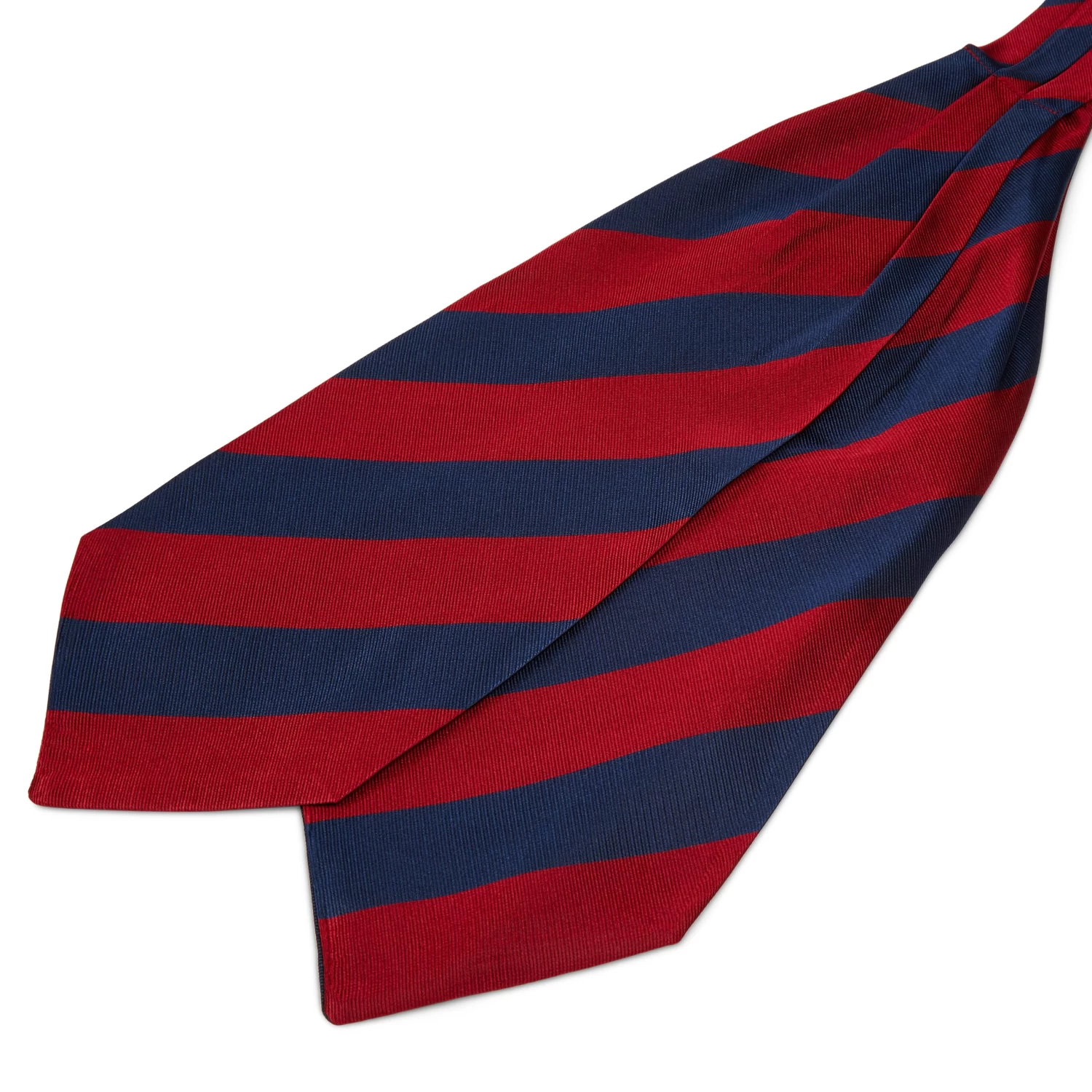 The wide red and navy stripes on this cravat lend it a traditionally elegant look and feel.