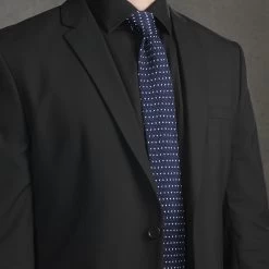 Keep it simple with this beautiful navy blue necktie. The elegance is in the details, with small white tulips decorating the front in rows.