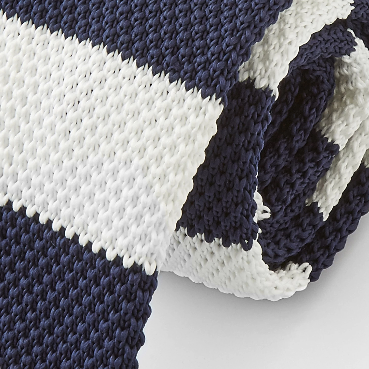 Hey, sailor! Thick blue and white stripes alternate across the face of this tie for a fun nautical feel. Knit from 100% polyester, it is soft to the touch and easy to wash. Fantastic addition to any wardrobe!