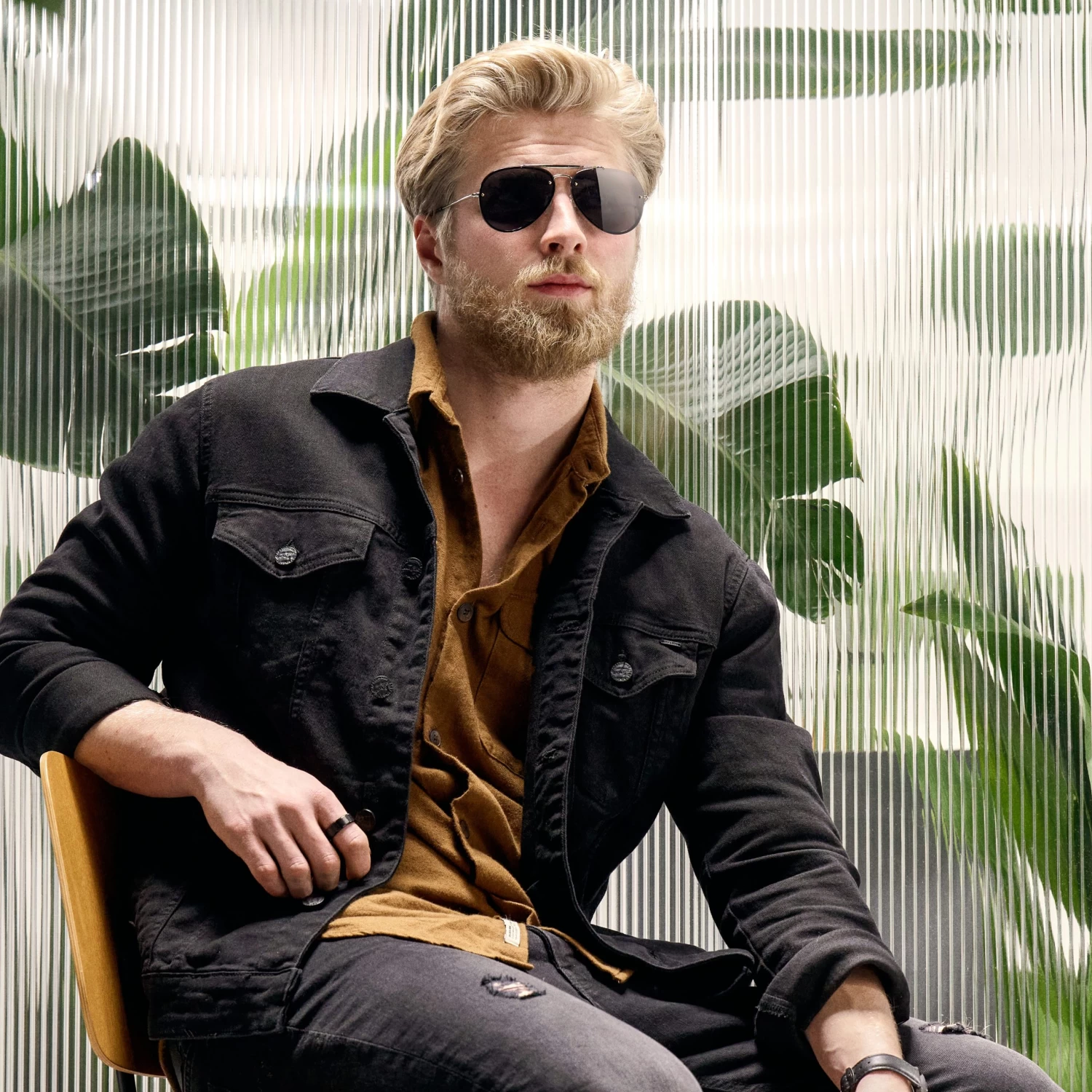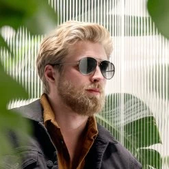 A pair of aviator men’s sunglasses in versatile black. Put them on, go out for a drive, and dream of flying.