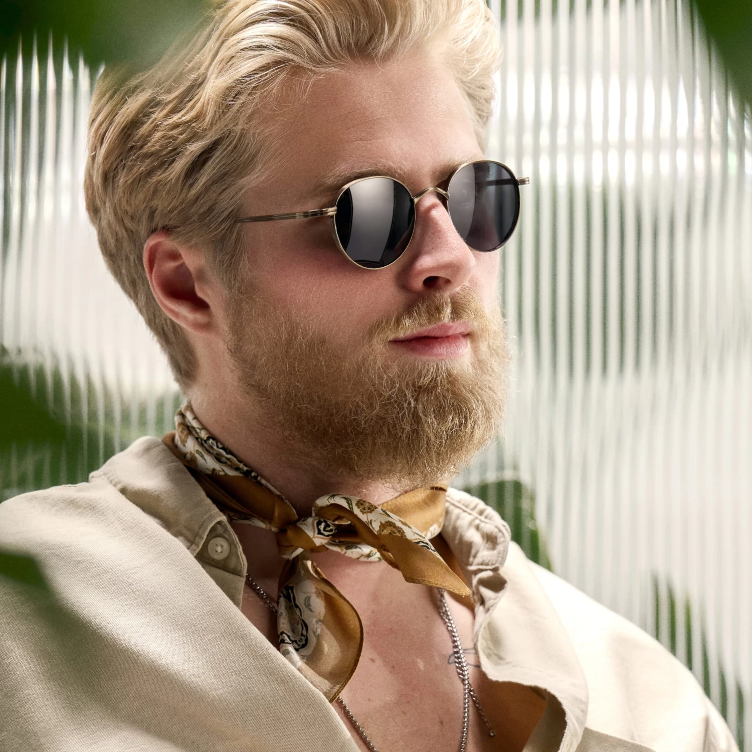Protect your eyes from the sun’s blinding glare with this pair of men’s sunglasses. The round frames add a touch of retro to your look.
