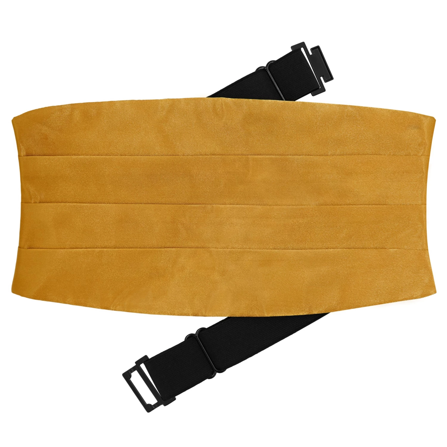 This stunning handmade cummerbund is crafted with luxe autumn yellow satin. Features pleats for added interest.