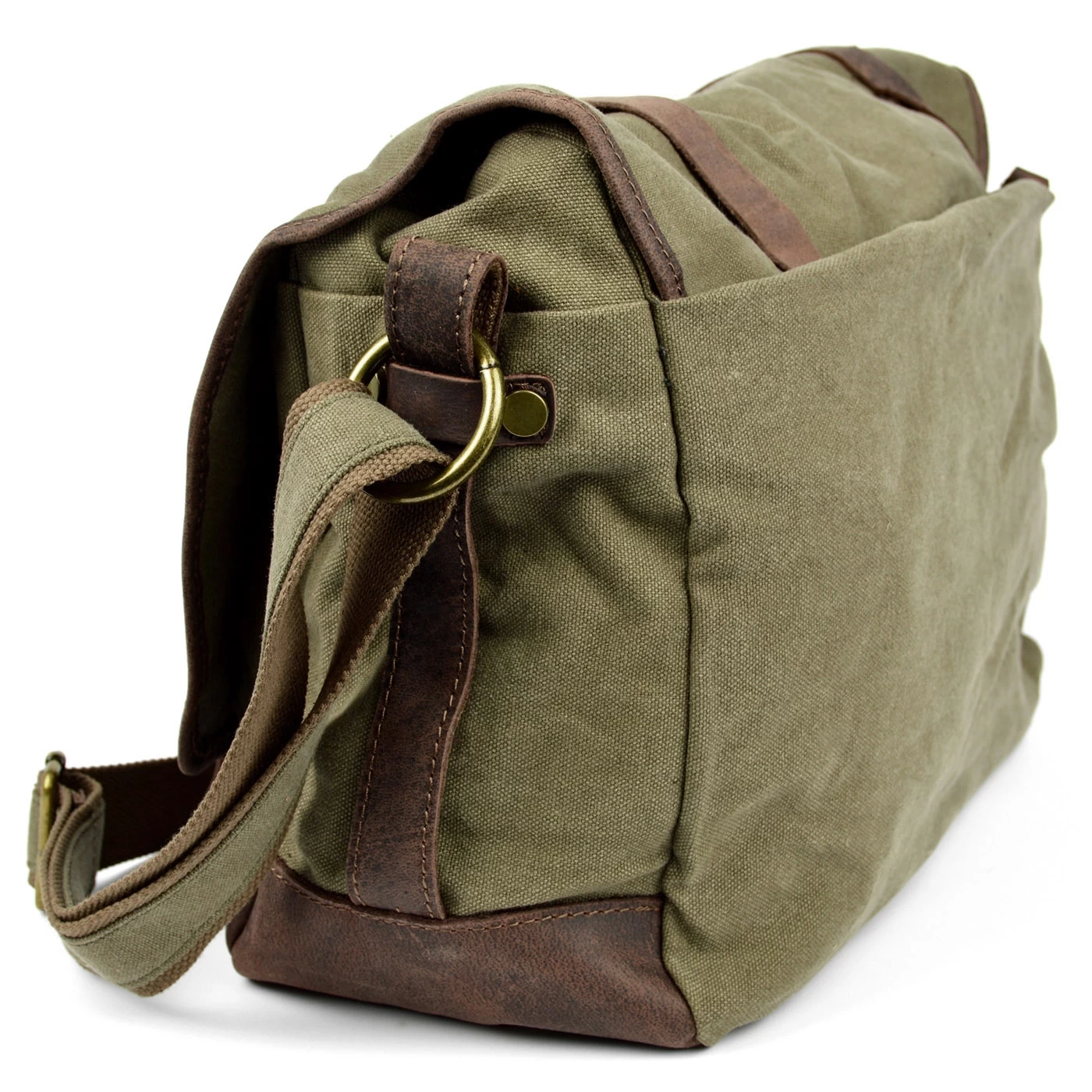 This bag features strong canvas and genuine leather, it is simply designed to look like a classic retro messenger bag!