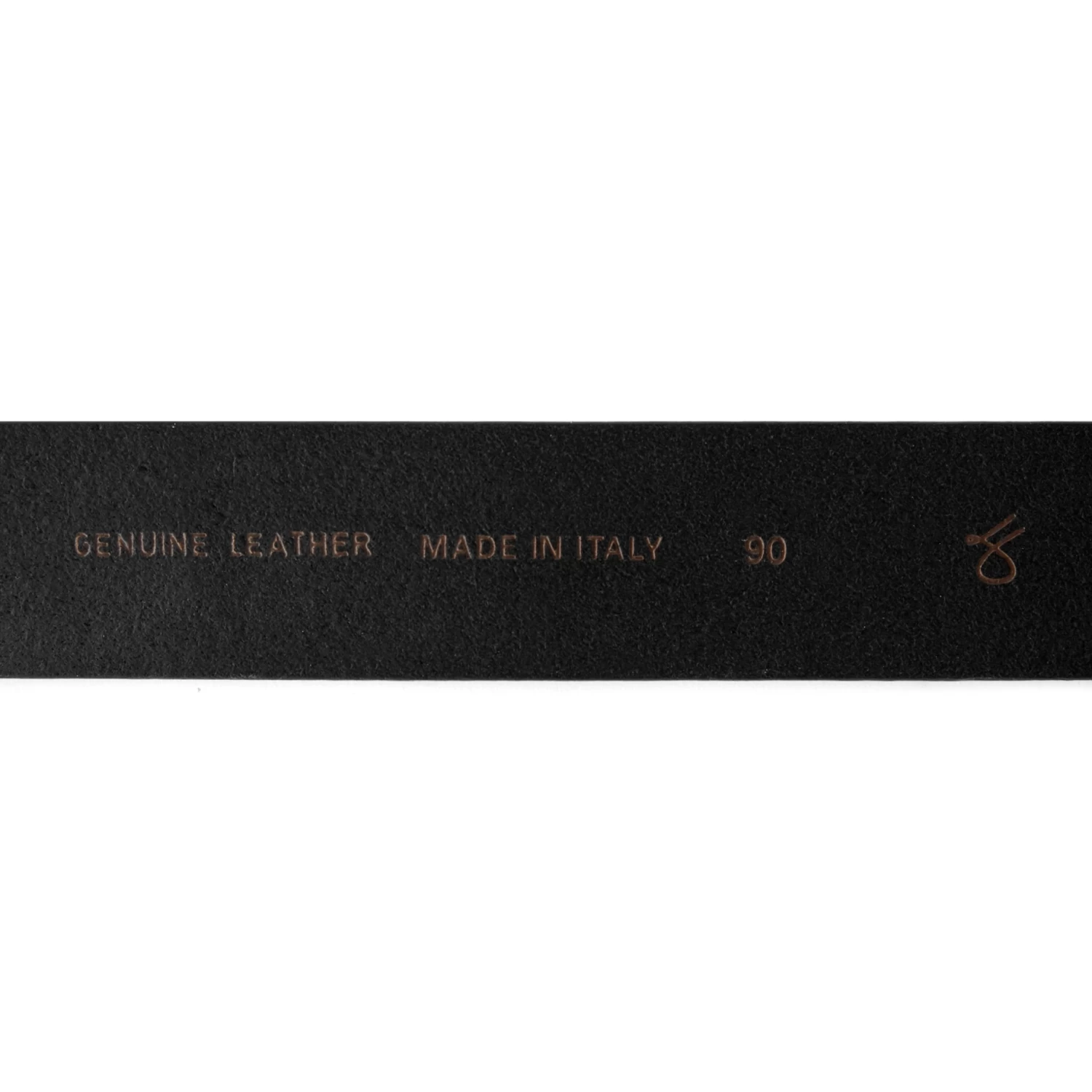 Cut from full-grain, vegetable-tanned Italian leather, it features a nickel-plated brass buckle, beveled edges and a glossy finish.