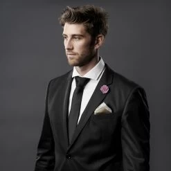 Soft pink cotton petals are held together by a polished steel stem. Goes best with a dark navy suit or overcoat.