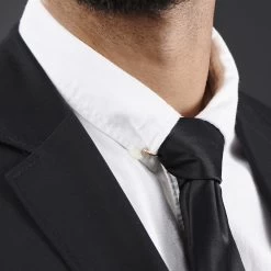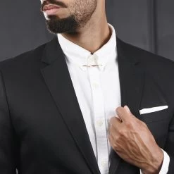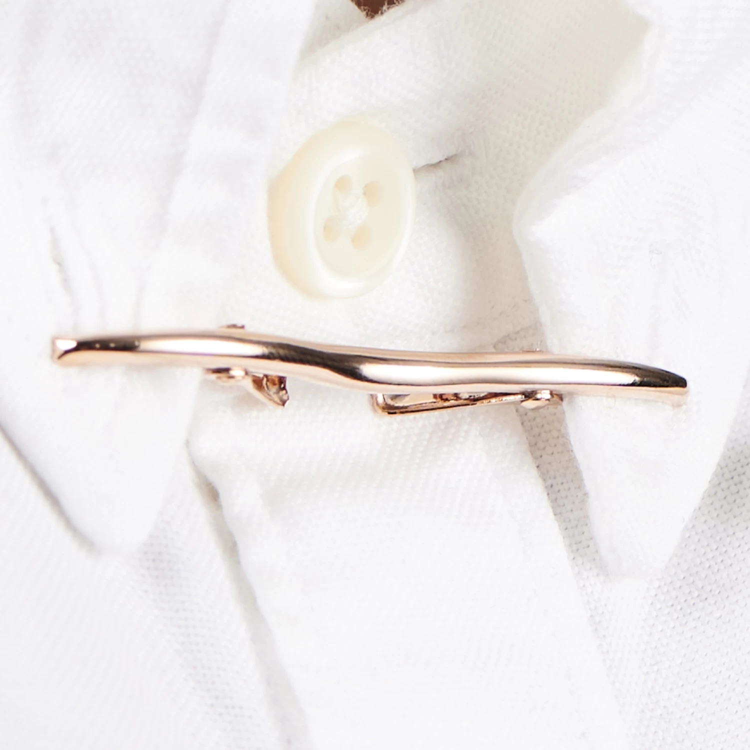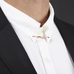 This slick rose gold-toned metal bar clasps onto the corners of your shirt collar. It sits behind your tie knot for a sophisticated and dapper look.