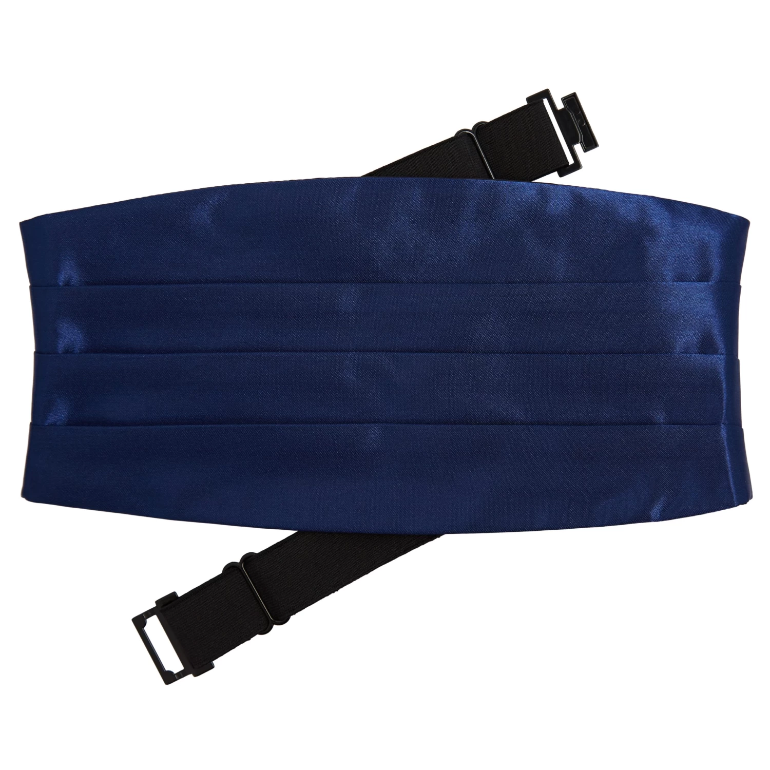 This handmade cummerbund is made of satin and features three pleats. Fastens with an elastic strap that’s fully adjustable to most waist sizes.
