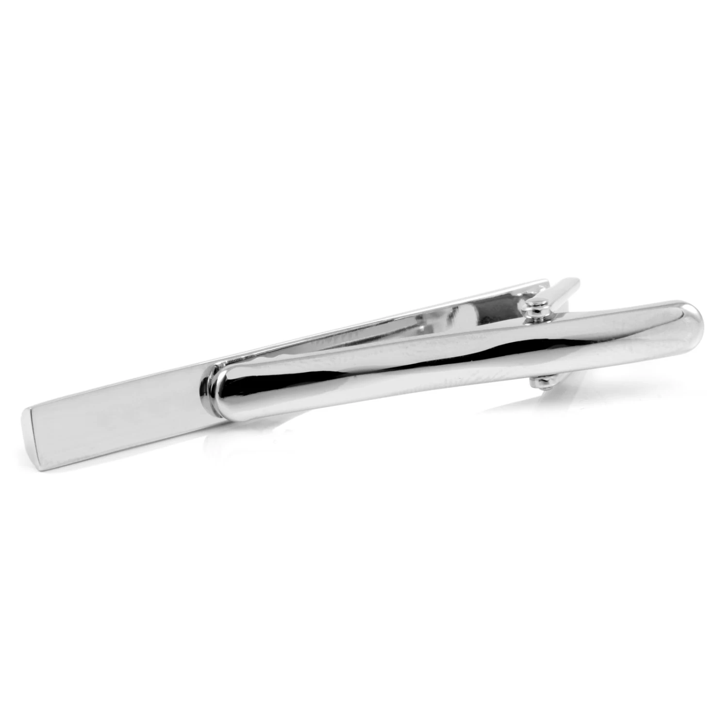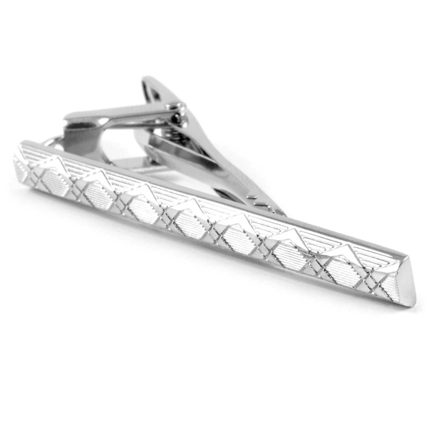 Silver-toned tie clip features a monochrome argyle design etched into the metal. Length suits semi-narrow and regular tie widths.