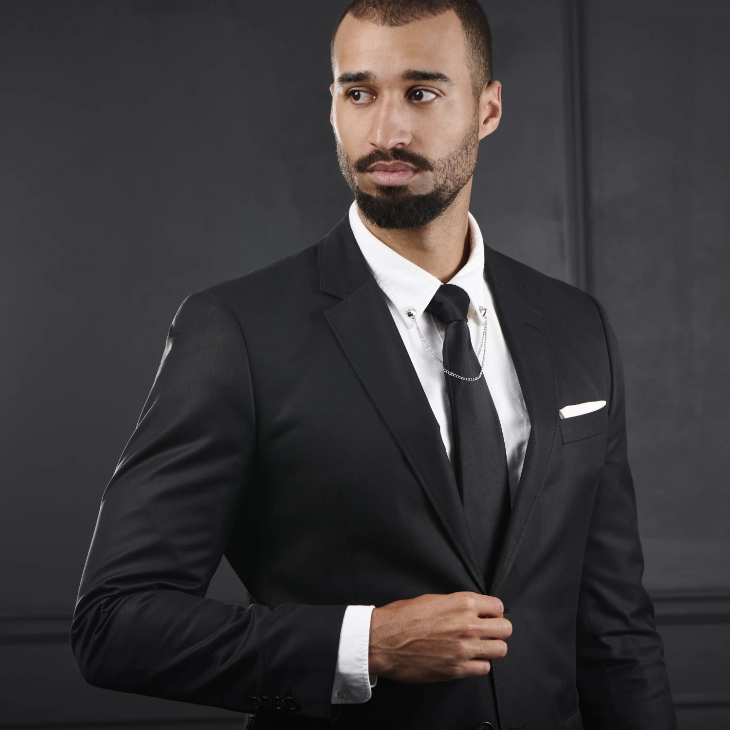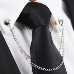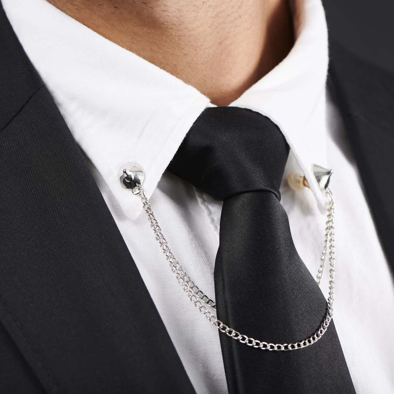This is the perfect first collar chain for those who’ve been wanting to try one. The subtle silver-toned studs pierce your collar points and secure from behind. The chain adjoins the two sides. No need for a tie when sporting this accessory.