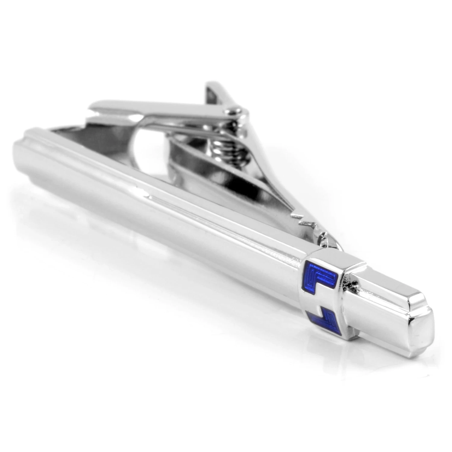 Features 2 L-shaped royal blue details for a pop of color. Best suited for semi-narrow and normal width neckties.