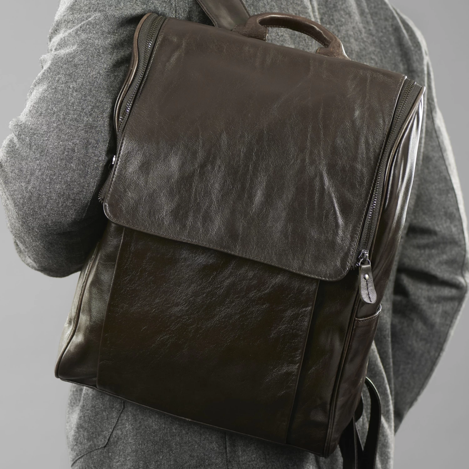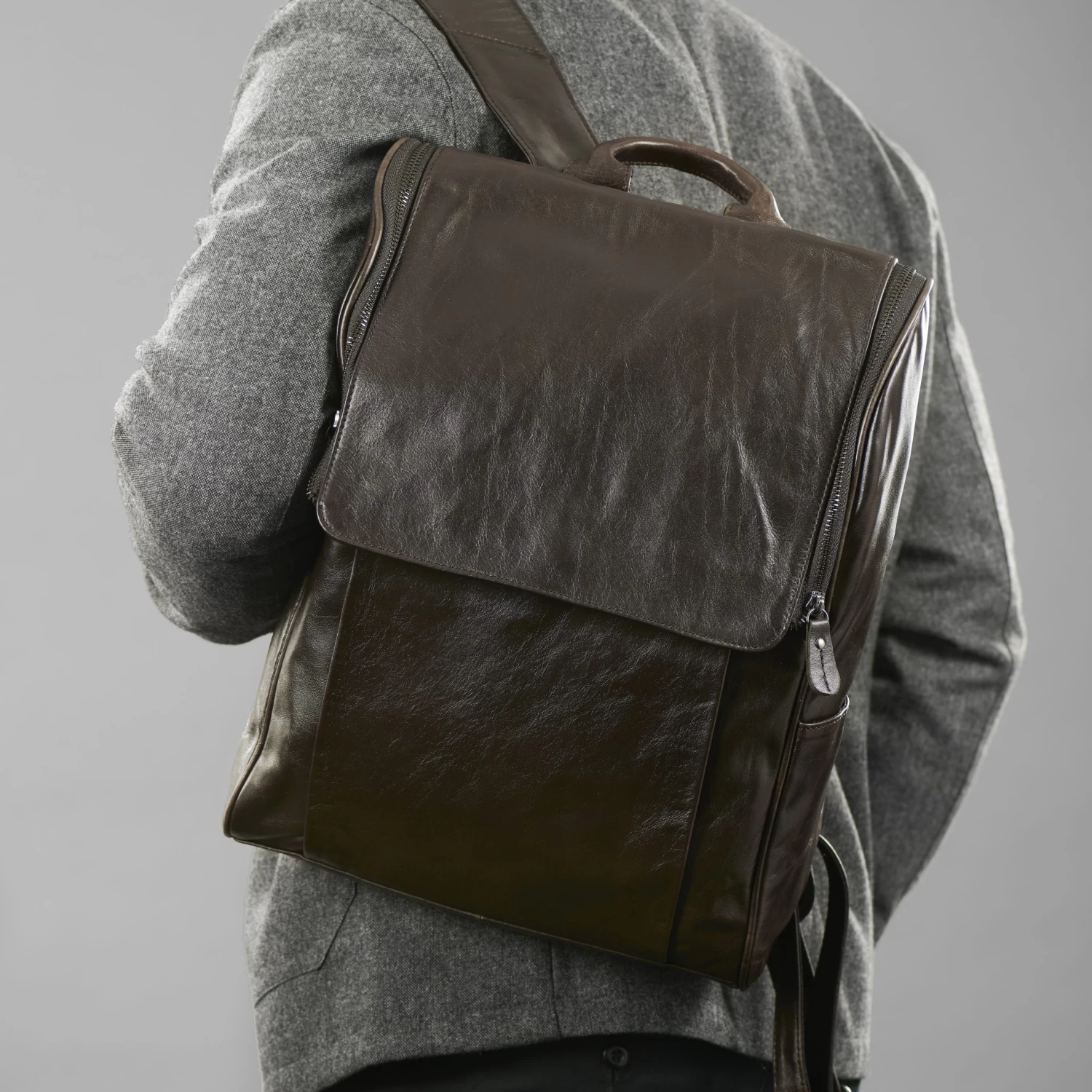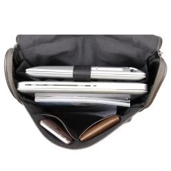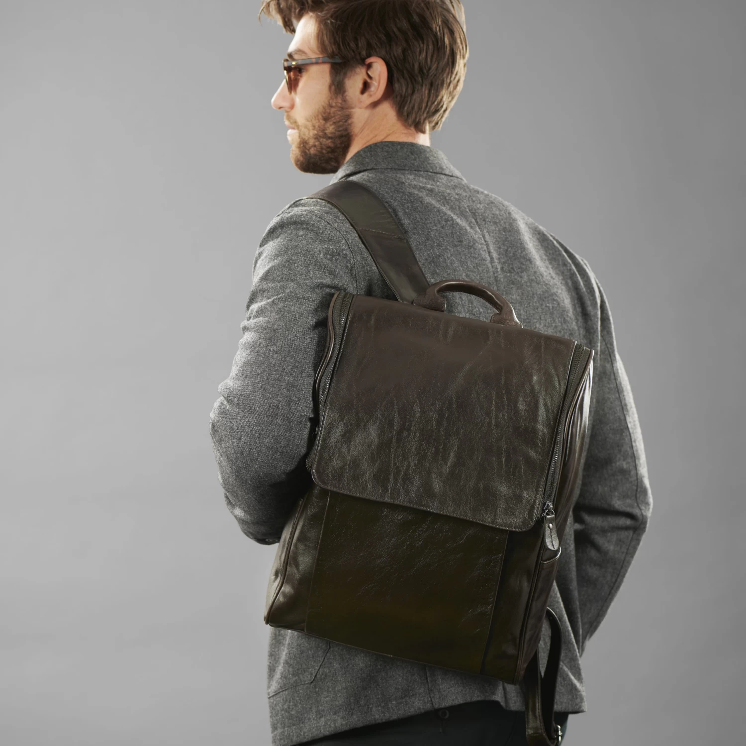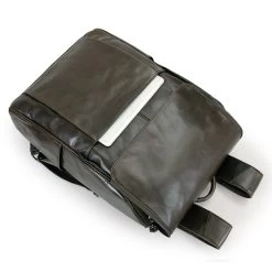 This clean-cut, slim gray backpack is perfect for business and travel. Featuring genuine cow leather, it’s got a firm grab handle and adjustable shoulder straps.
