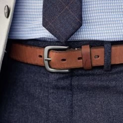 Throw this belt on with a pair of jeans and a t-shirt, and you’re good to go. A great casual choice, it’s made from high-quality brown Italian leather and features a simple metal buckle.