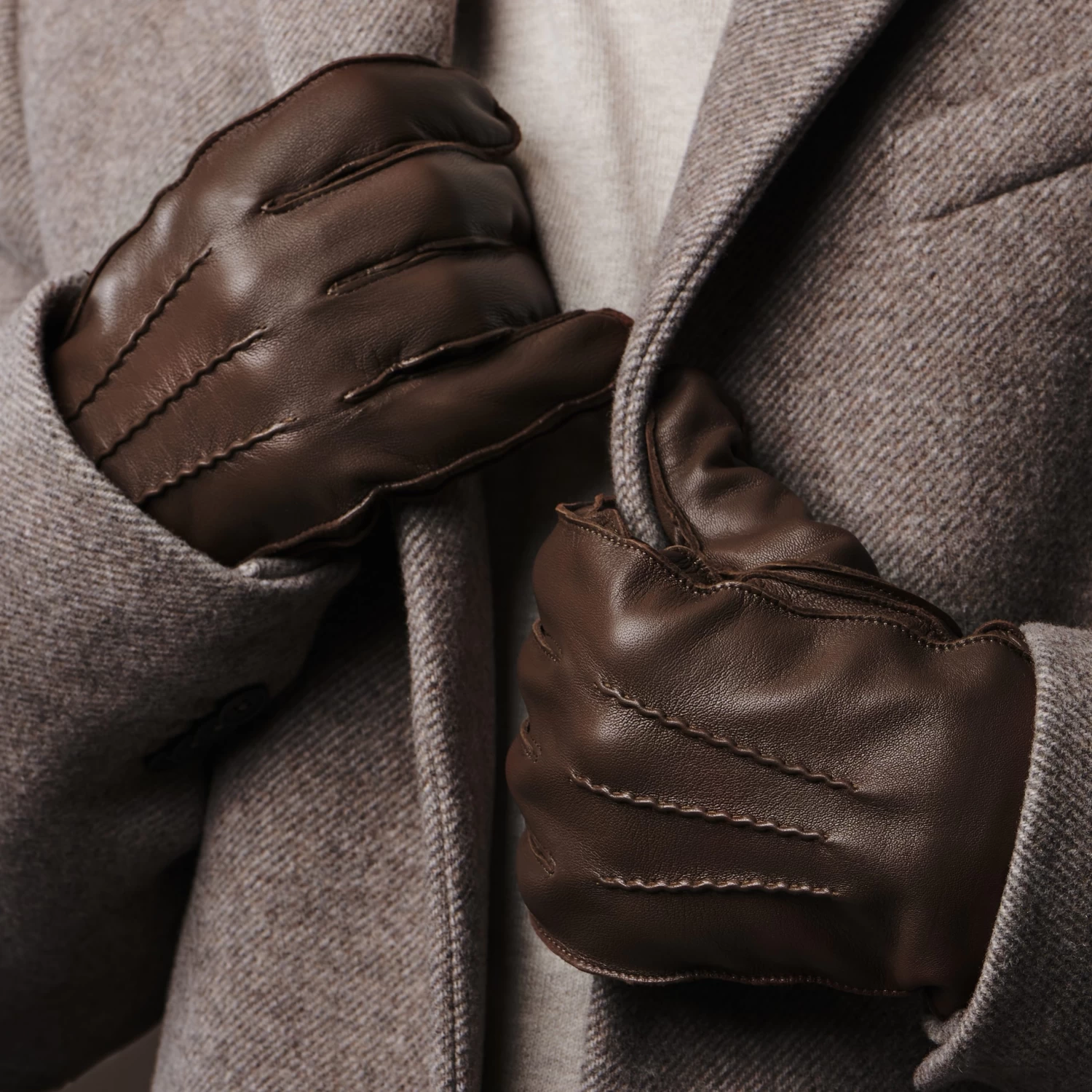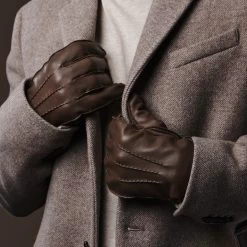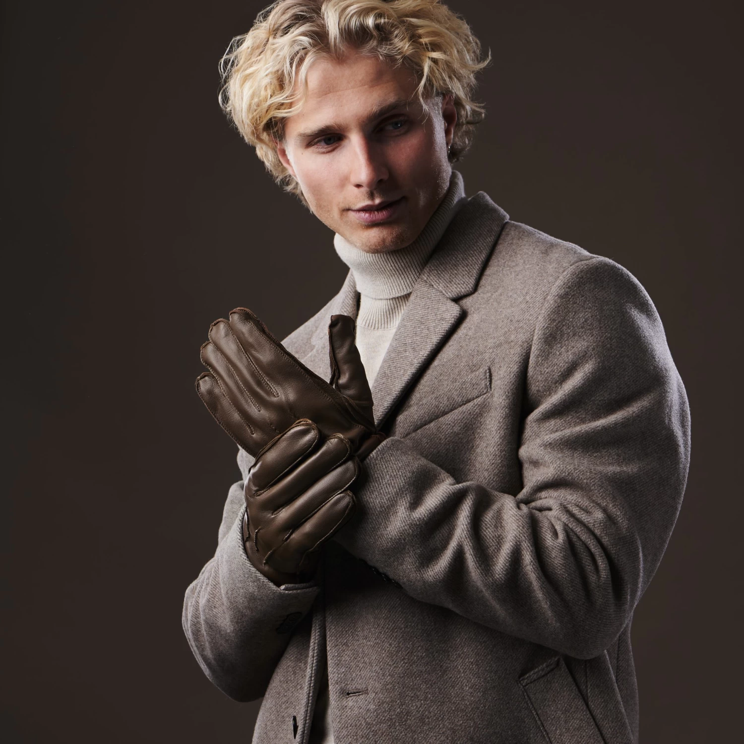 Carefully crafted from soft sheep leather, this pair of light-brown men’s winter gloves will have your hands toasty without sacrificing status updates or emails.
