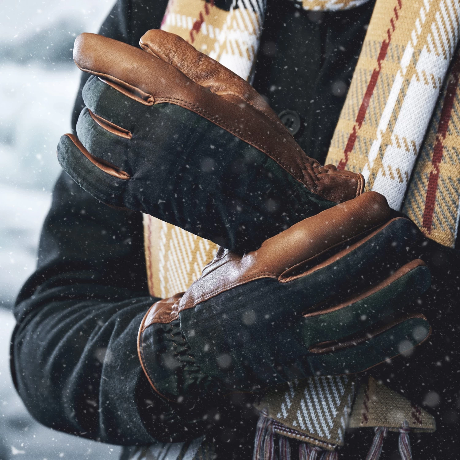Stay warm and stylish with these supple sheepskin gloves featuring a cosy wool lining for ultimate comfort. The canvas side features a handsome plaid pattern for a subtle pop of colour. Combining elegance and practicality, these men’s gloves are the ultimate accessory for fashionable protection against the elements.
