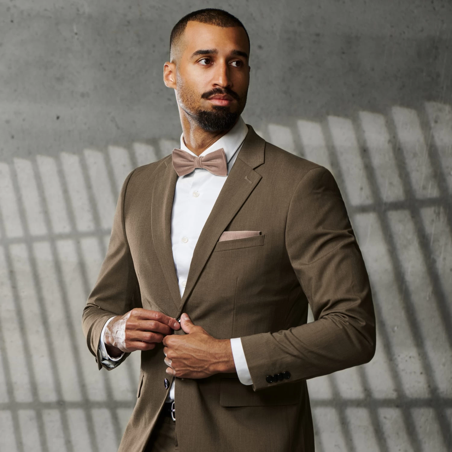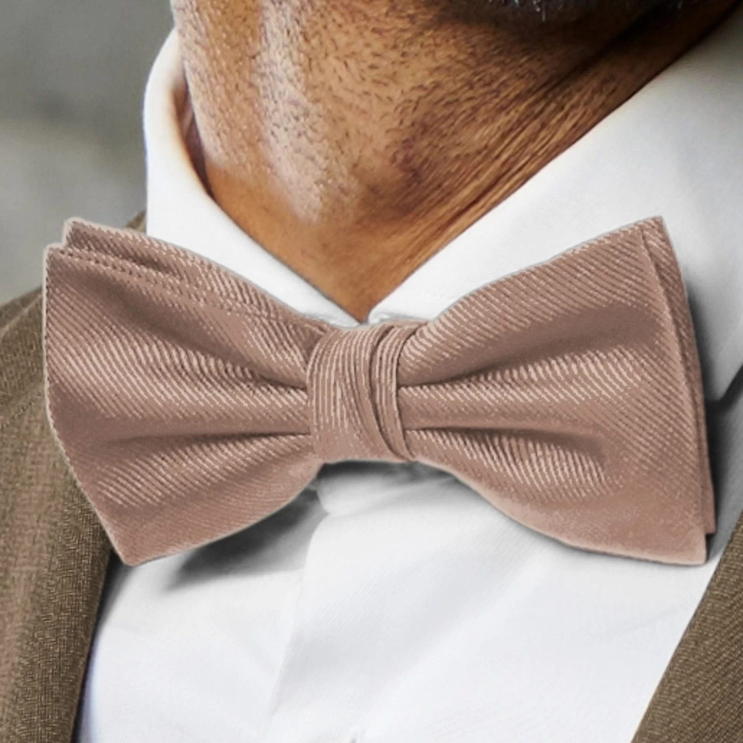 This bow tie comes in a grosgrain pattern for a sleek texture that brings out its handsome tan colour.