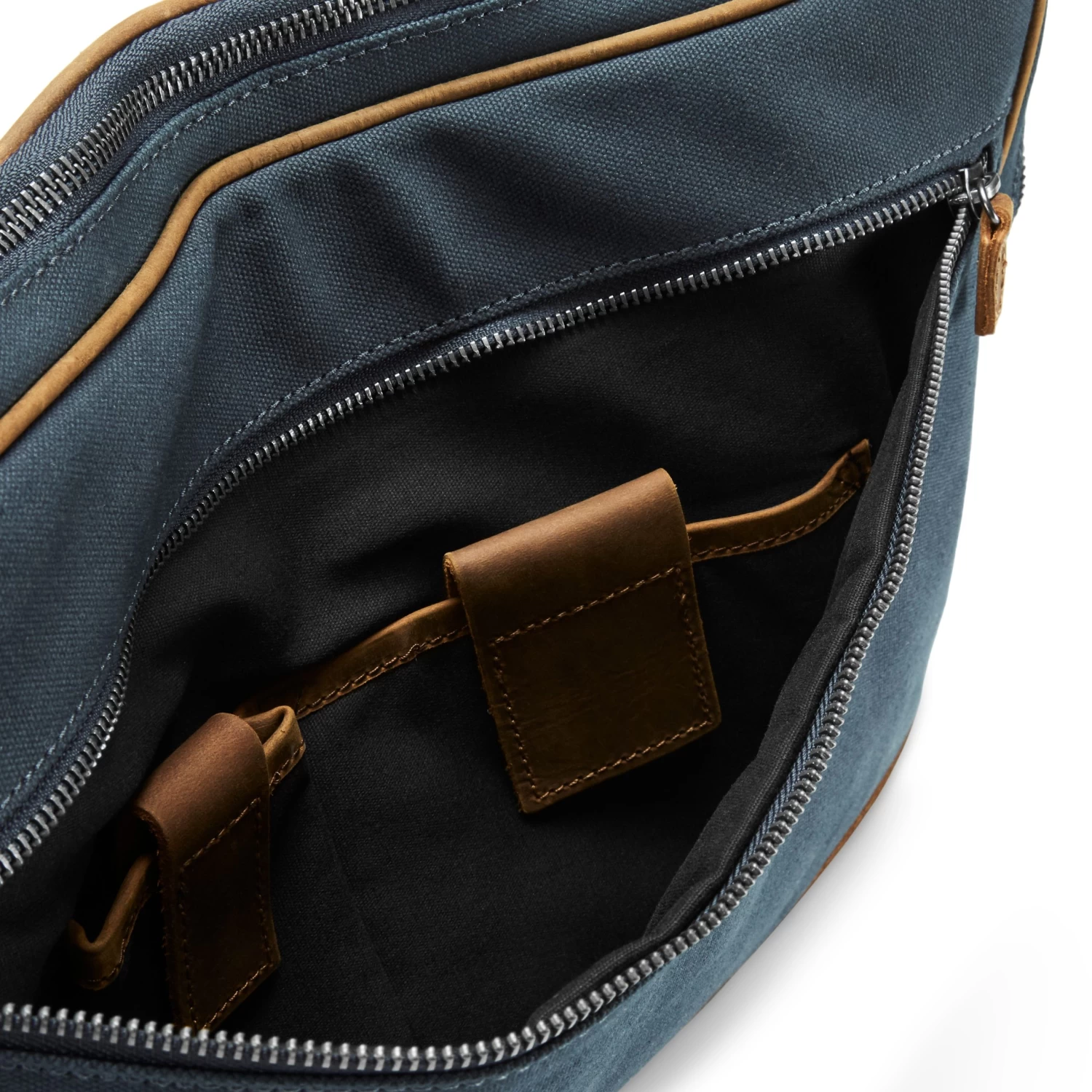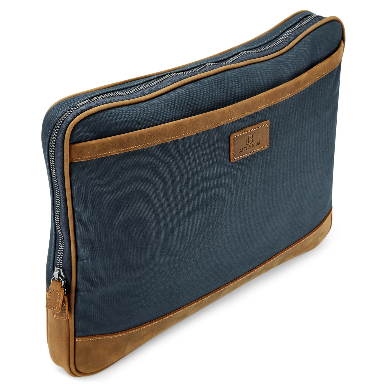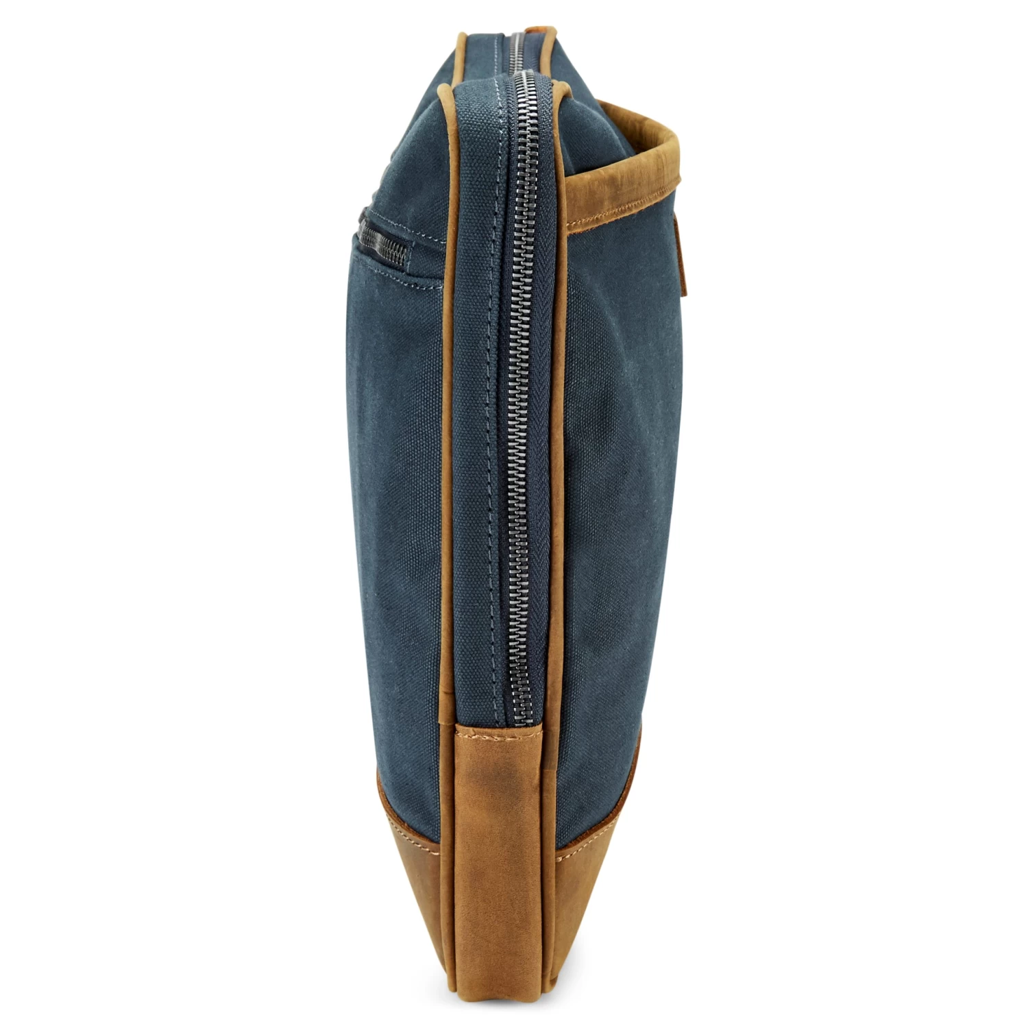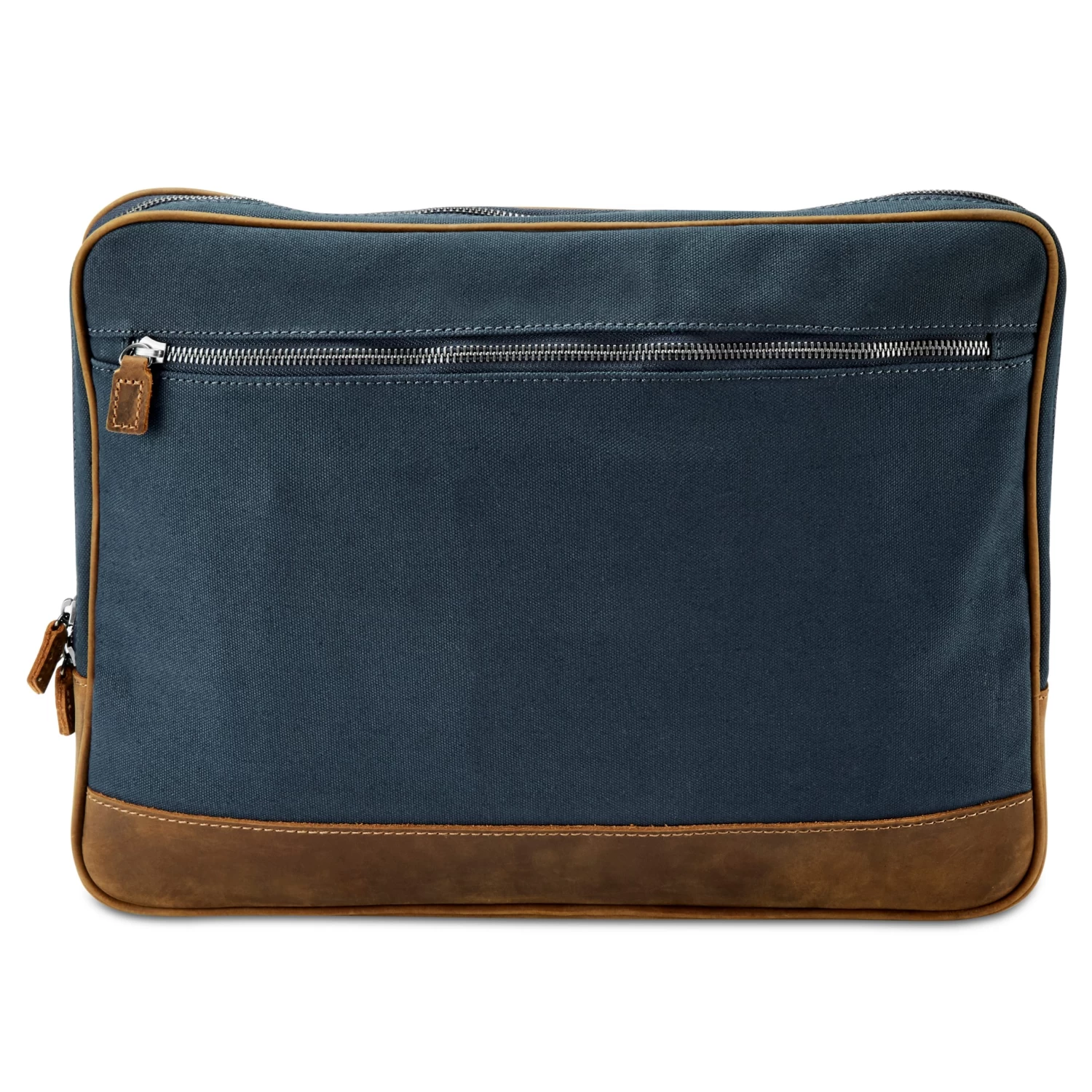 Designed to go with you and not shy away in the corner, this durable, blue canvas sleeve is strong enough to face the world and protect your laptop.