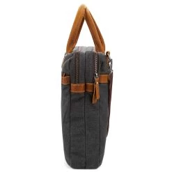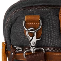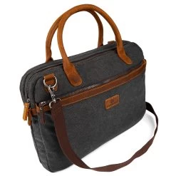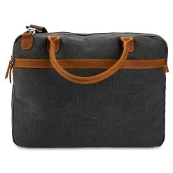 This oversized laptop bag for men features durable grey canvas, genuine leather, and silver-toned metal construction.