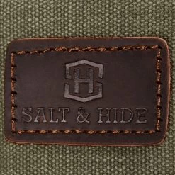Bag is crafted with durable materials such as cotton canvas, genuine leather, YKK zippers, and metal accents.