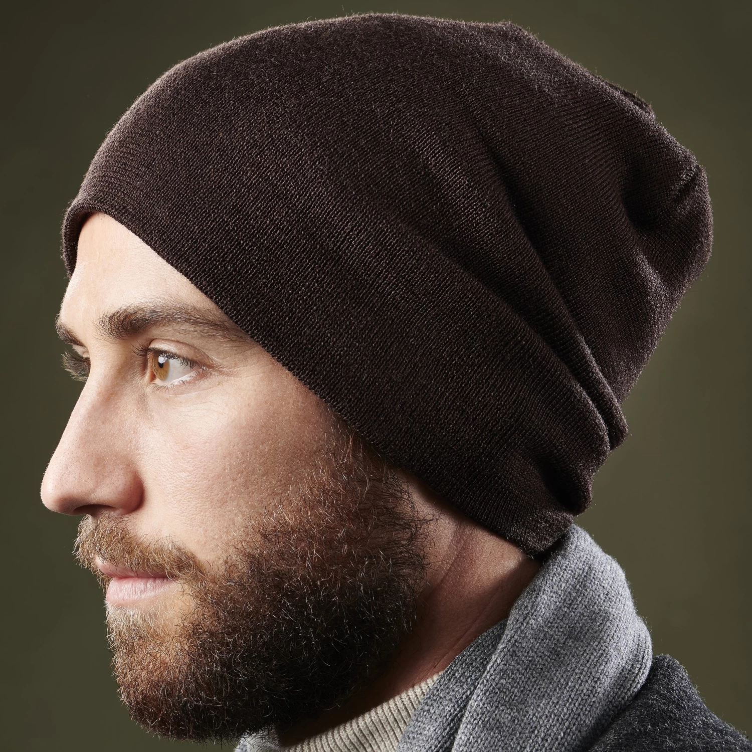 This sweet chocolate brown beanie will keep your head warm all season. Soft knit construction from merino mix yarn and excellent craftsmanship ensure this accessory for men will easily withstand cold weather conditions.