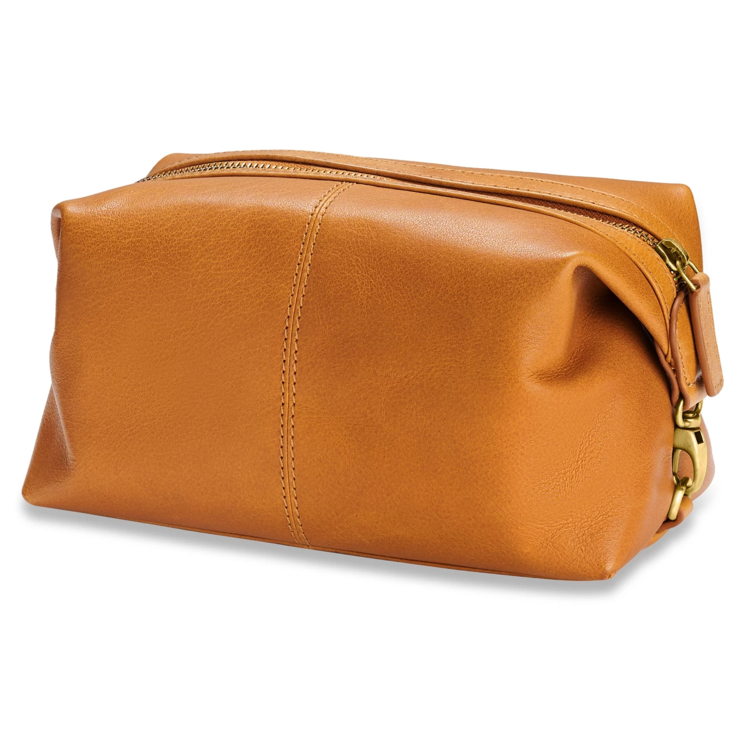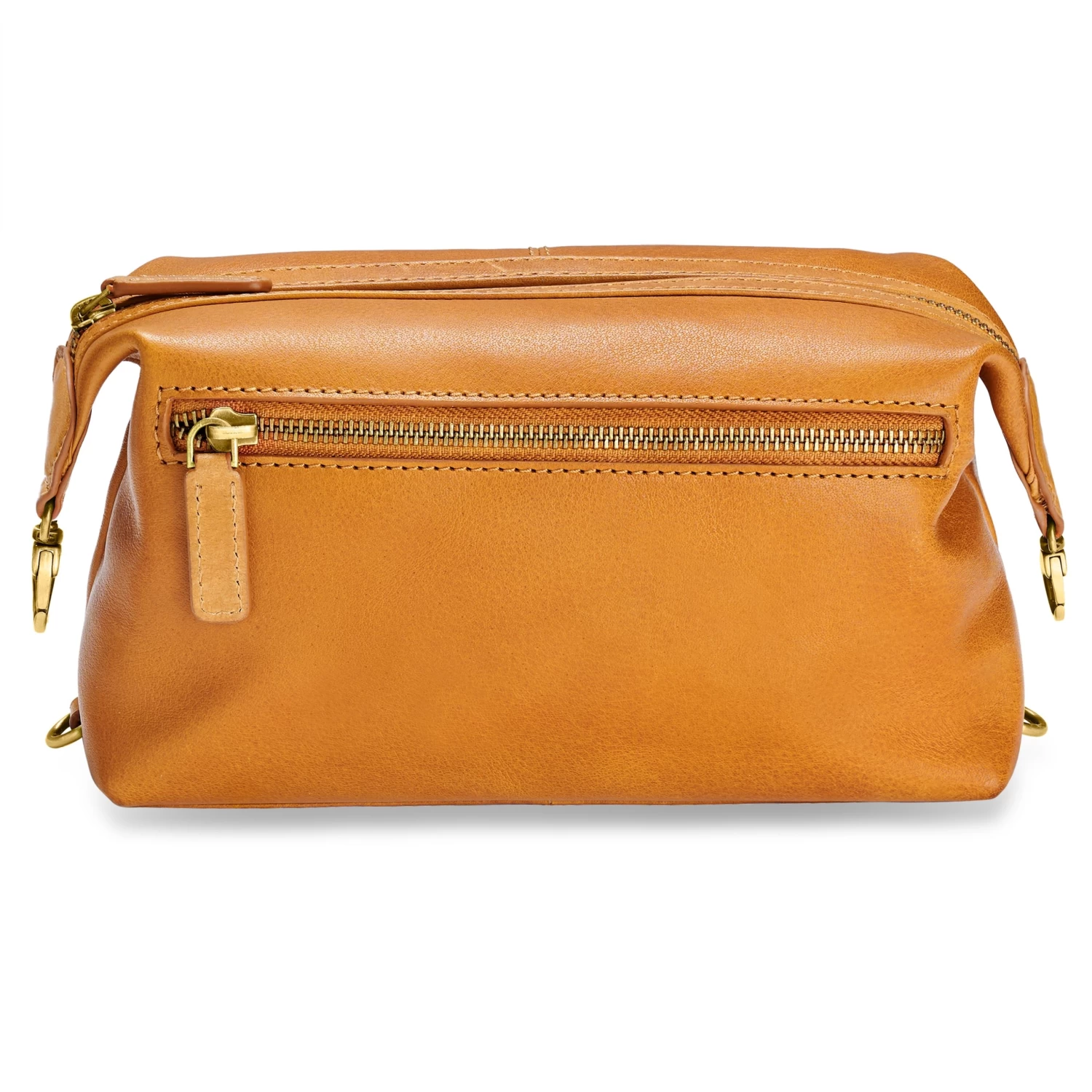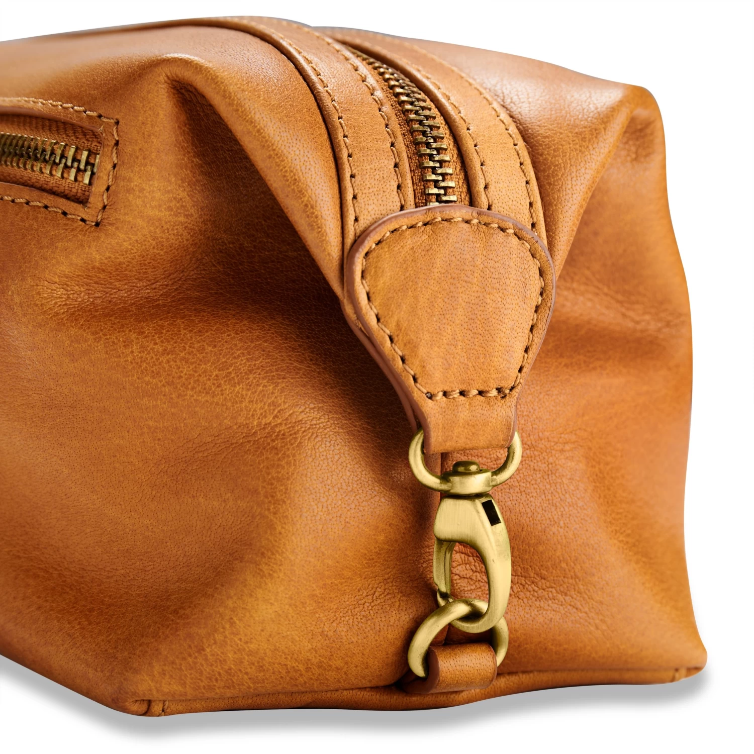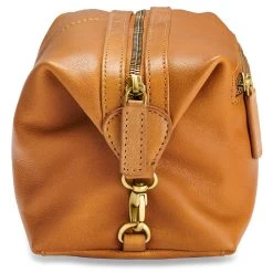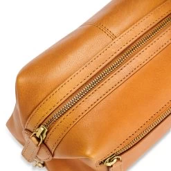 A tan full-grain buffalo leather toiletry bag – the perfect fusion of style and practicality. Comes in a spacious design with a zip pocket on the outside, one on the inside, and two additional elastic pockets for easy organisation and convenience – no more rummaging in the depths of your bag for what you need. Lined with soft twill fabric for a touch of luxury.