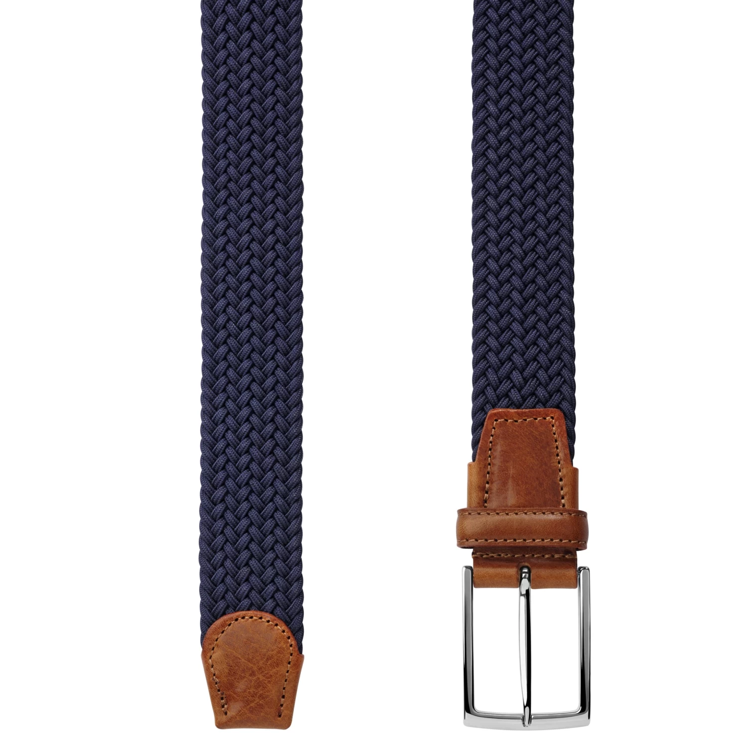 The buckle comes in a polished silver tone made from zinc – durable and scratch resistant. Full-grain genuine leather highlights complete the look, in a tan colour that pairs handsomely with the dark blue.