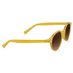 Show off your unique side with these bright yellow frames. The dark lenses offer full UVA/UVB protection along with polarization to reduce glare from surfaces such as water or ice.