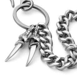 Complete with 2 metal talons on one end and a secure lobster claw closure with a skull design on the other. Hooks to your belt loops and/or to your wallet.