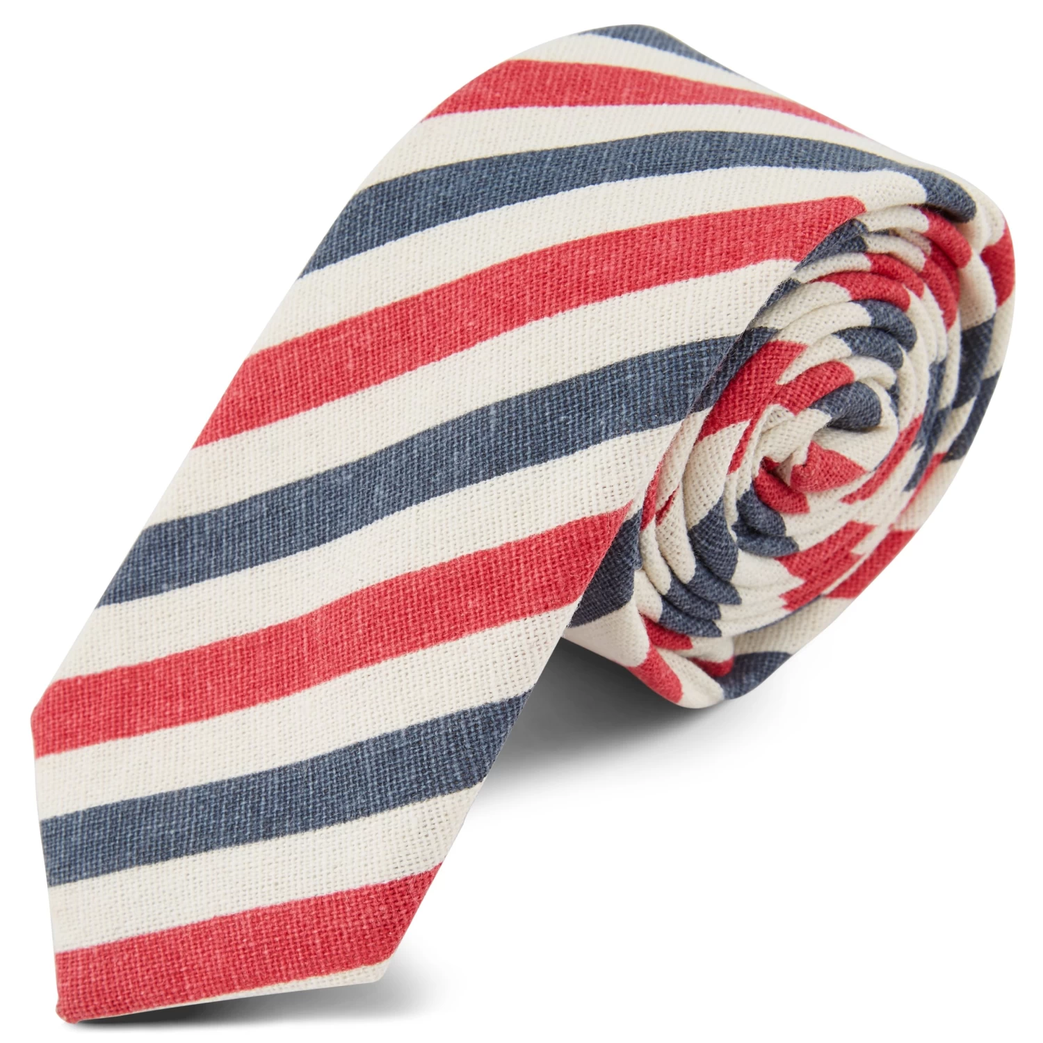 Woven from durable cotton and flax. Comes in a modern semi-narrow width.