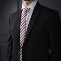 Bold and bright, this retro-feel tie features wide alternating stripes for an attractive splash of color to your neckline.